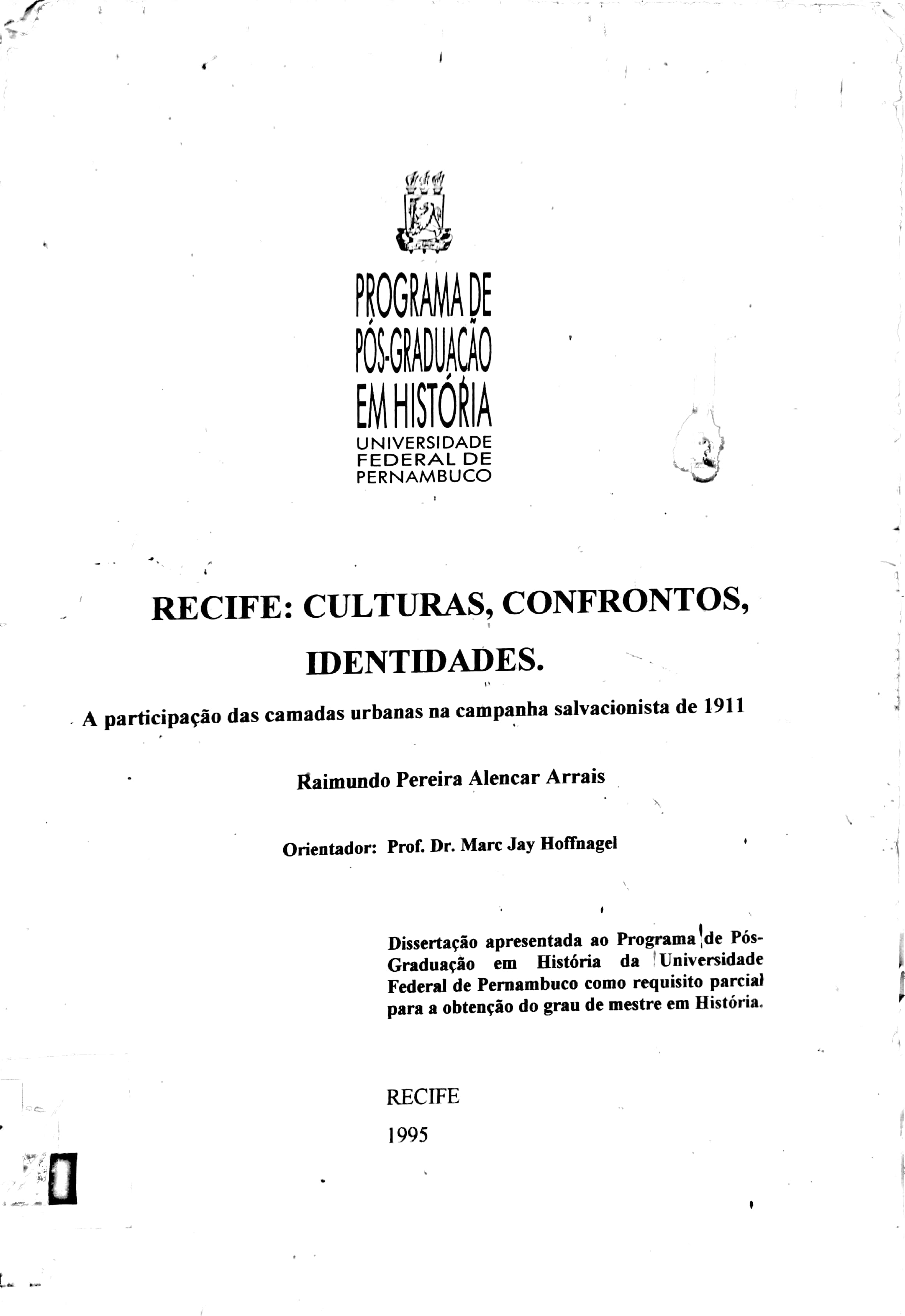 Recife: Culturas, Confrontos, Identidades. A Participação das Camadas Urbanas na Campanha Salvacionista de 1911