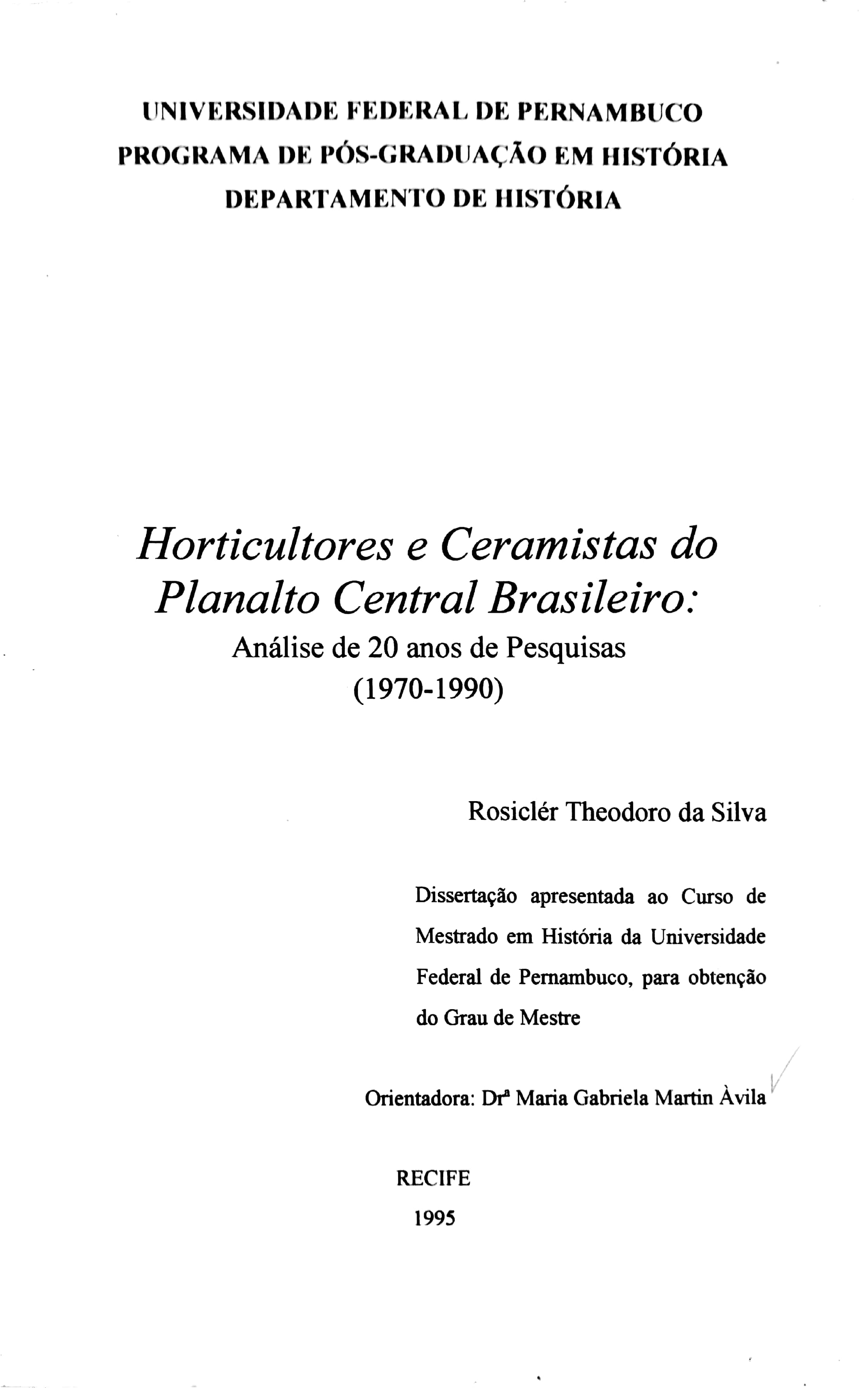 Horticultores e Ceramistas do Planalto Central Brasileiro: Análise de 20 Anos de Pesquisas (1970-1990)