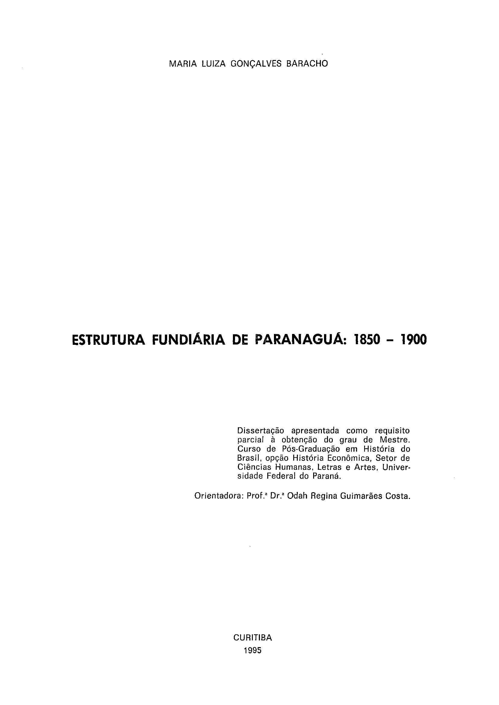Estrutura Fundiária de Paranaguá: 1850-1900