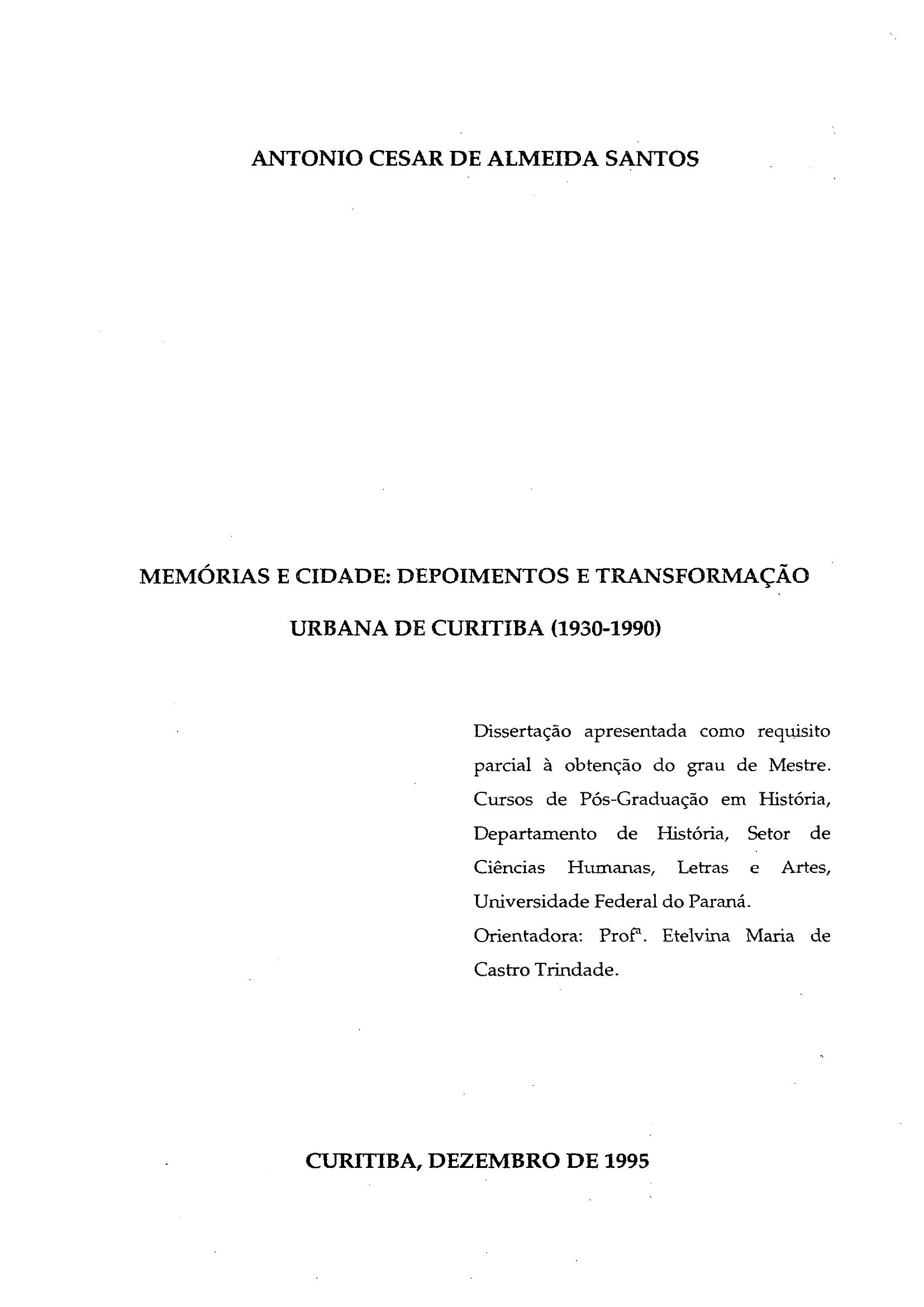 Memórias e Cidade: Depoimentos e Transformação Urbana de Curitiba (1930-1990)