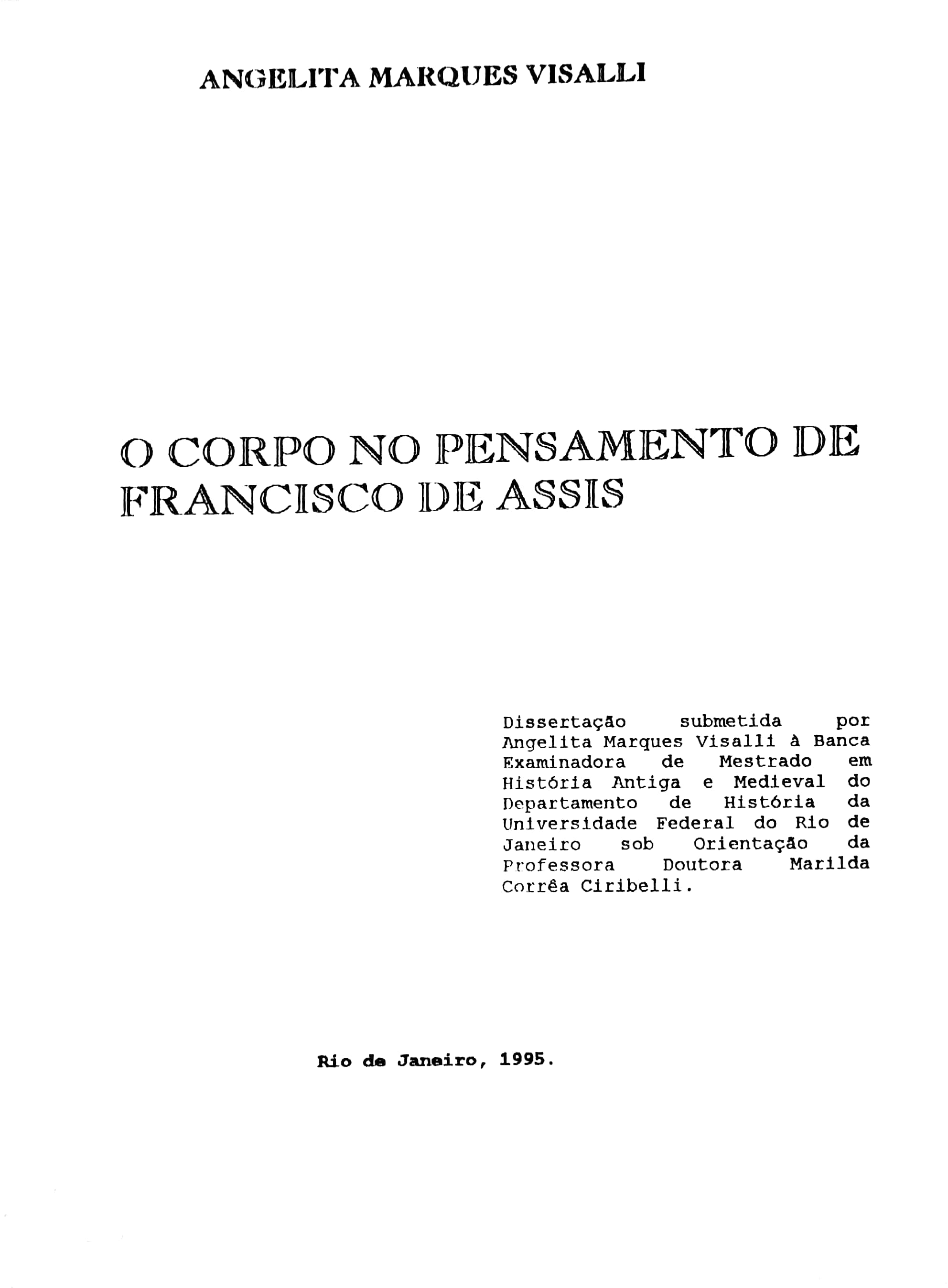 Francisco nasceu na 2ª metade do século XII, tendo sido, até aproximadamente 22 anos, um laico bem integrado em seu meio. No entanto, desperto pela onde de religiosidade que emergiu do laicado no período, abandonou sua forma de vida para dedicar-se exclusivamente a Deus, tornando-se, não um monge, para o que teria condições econômicas, mas, sim, um penitente, forma de vida religiosa comum a um laicado de origem modesta. Isto vinha de encontro com as novas exigências religiosas da época, que percebiam na pobreza absoluta, na castidade e na pregação, a forma de vida verdadeiramente "evangélica". A partir da conversão, Francisco passou a tratar seu corpo de forma especial. Se a prática penitencial em sua essência já implicava na interdição (sexual, alimentar), como forma de fazer prevalecer no penitente a vontade do Criador em detrimento da sua própria (questão fundada na "decadência" do primeiro casal), sua relação com o corpo tomou importância ainda maior. Suas atitudes enquadram-se na religiosidade popular de seu tempo, pois no tocante ao corpo, através da leitura literal da Biblia, percebia uma antítese corpo-alma que fez recair sobre o primeiro a tendência a preferir a satisfação própria à do Criador. O corpo, na perspectiva de Francisco, foi considerado possuidor de uma vontade própria devendo ser vigiado e treinado a não mais desejar, o que deveria ser alcançado através de rigoroso ascetismo. Ao corpo seria concedido a porção de alimento mínimo à sua subsistência. O castigo deveria ser aplicado diante da desobediência do corpo em desejar o prazer físico... |