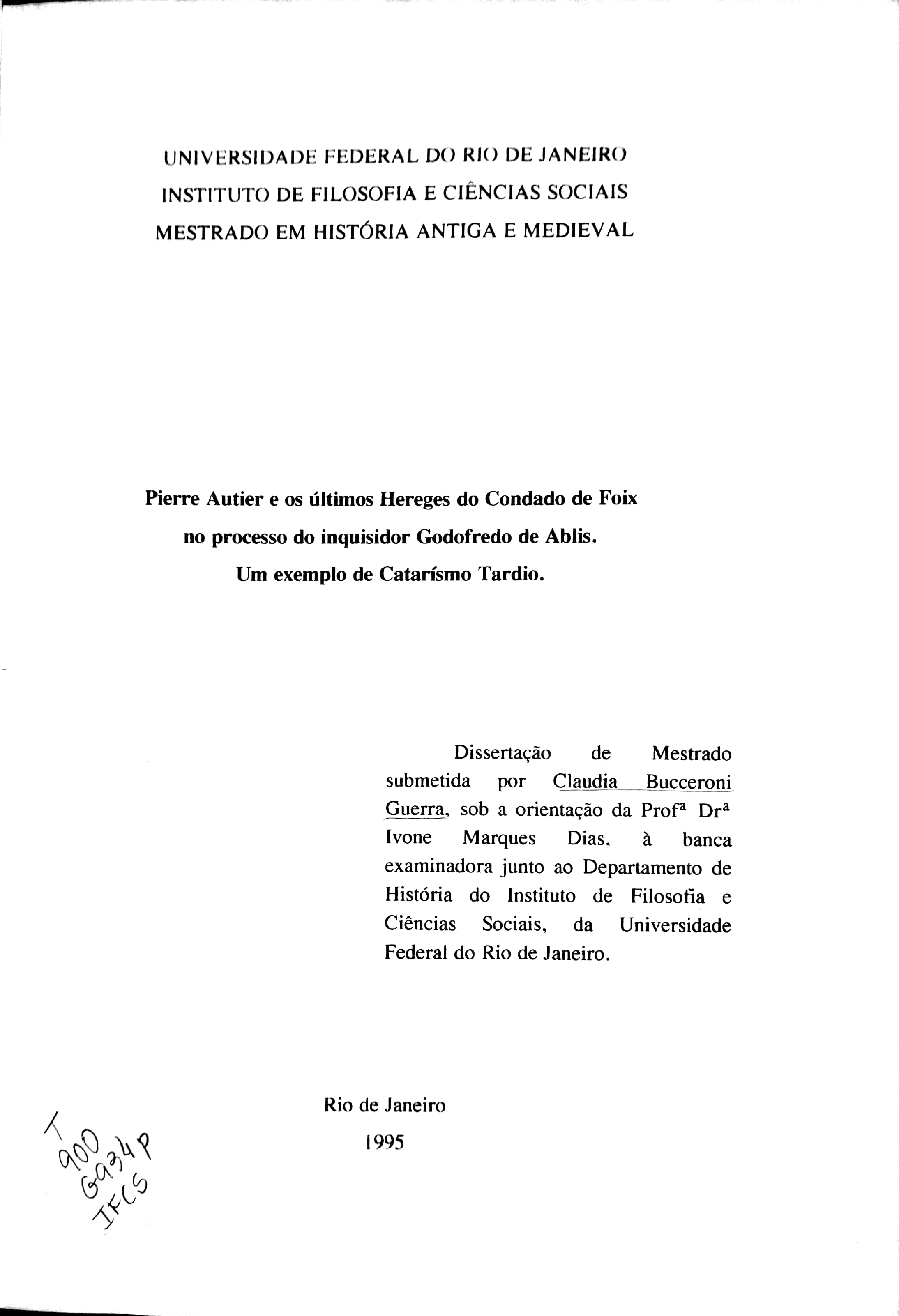 Em 1308/1309, no condato de Foix, foi instaurado um processo pelo inquisidor Godofredo de Ablis com o objetivo de capturar e punir um herege cátaro chamado Pierre Autier e seus seguidores. Este trabalho propõe uma análise deste processo, tendo como ponto de vista os seguintes aspectos: as relações de poder entre a Inquisição, os crentes e hereges, o que levava os indivíduos daquela sociedade a aderirem a uma crença proibida mesmo sob o risco iminente da punição severa, e qual a importância do indivíduo neste momento em que a heresia cátara assumia um aspecto subterrâneo e decadente, na sua manifestação tardia. |