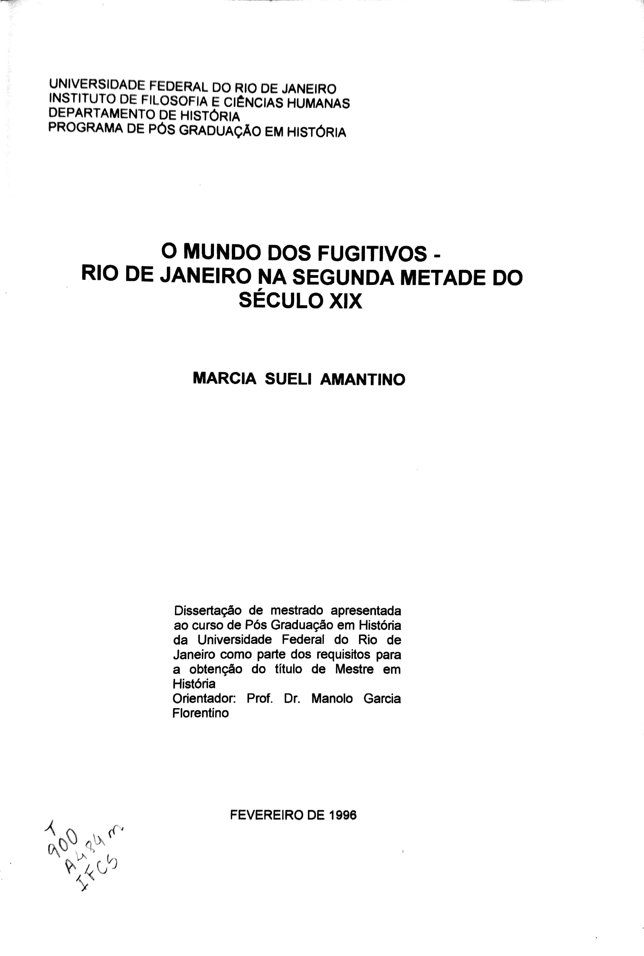 O Mundo dos Fugitivos - Rio de Janeiro na Segunda Metade do Século XIX