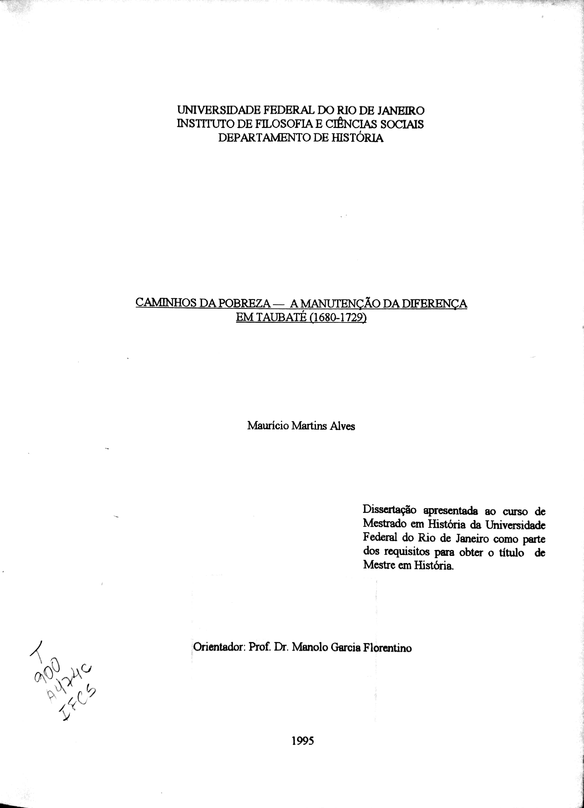 Maurício Martins Alves (Orientador: Manolo Garcia Florentino)