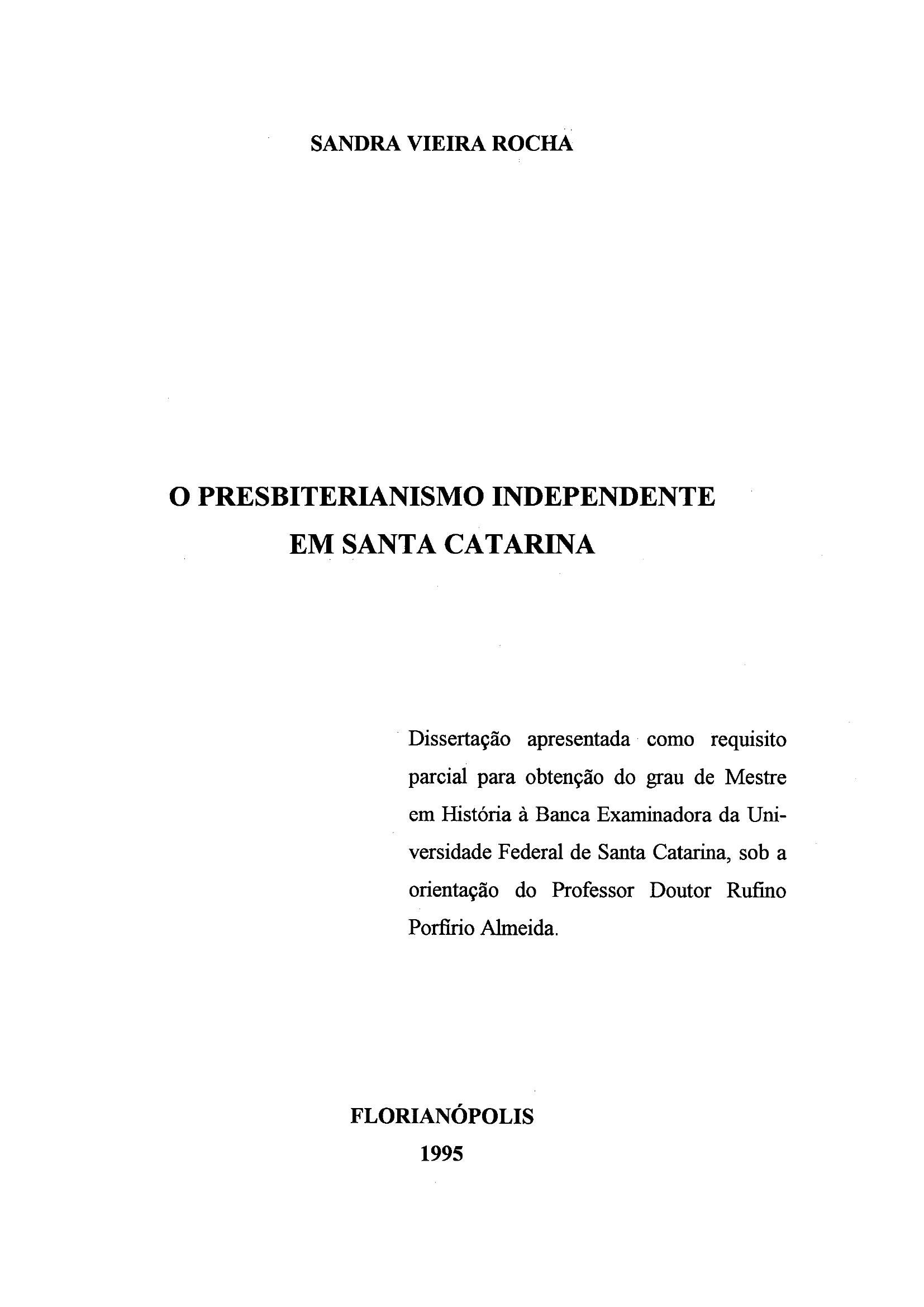 | Resumo: | Estudo sobre o [Presbiterianismo independente] em Santa Catarina, procurando mostrar as suas raízes, na Reforma, no século XVI, o seu surgimento no Brasil, resultado de um cisma na Igreja Presbiteriana, em 1903, e o seu estabelecimento no Estado, em 1904 e 1930. Apresenta também a estrutura eclesiástica da Igreja, além de reconstruir a história das igrejas locais e abordar as diversas atividades desenvolvidas pelas mesmas na atualidade. |