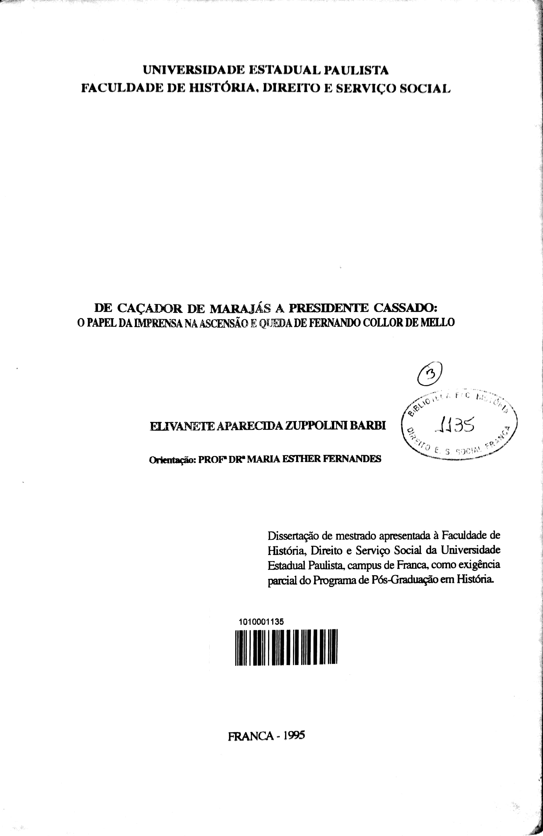 Elivanete Aparecida Zuppolini Barbi (Orientador: Maria Esther Fernandes)