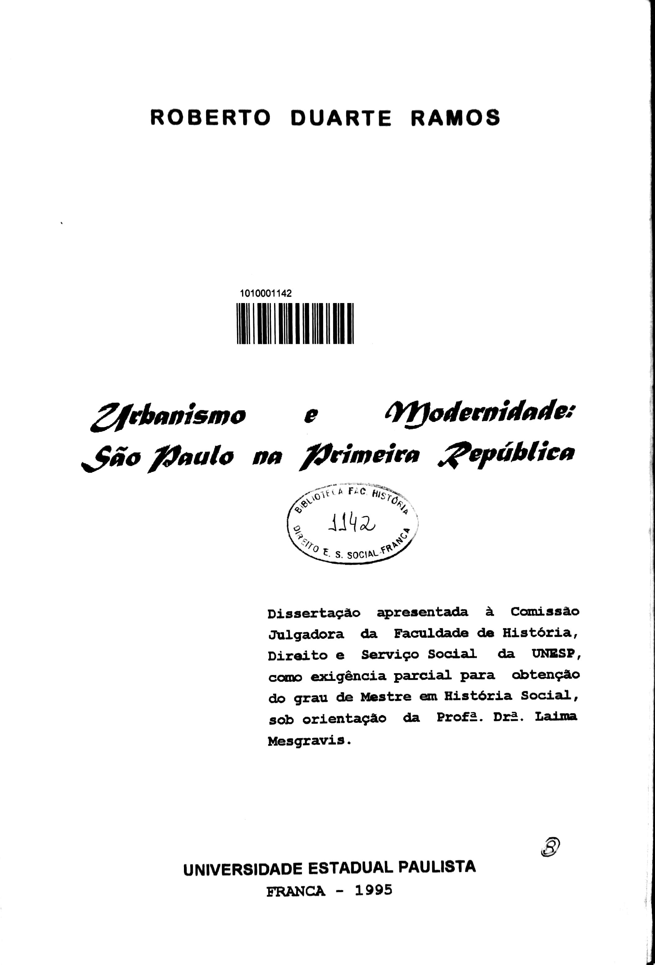 Urbanismo e Modernidade: São Paulo na Primeira República