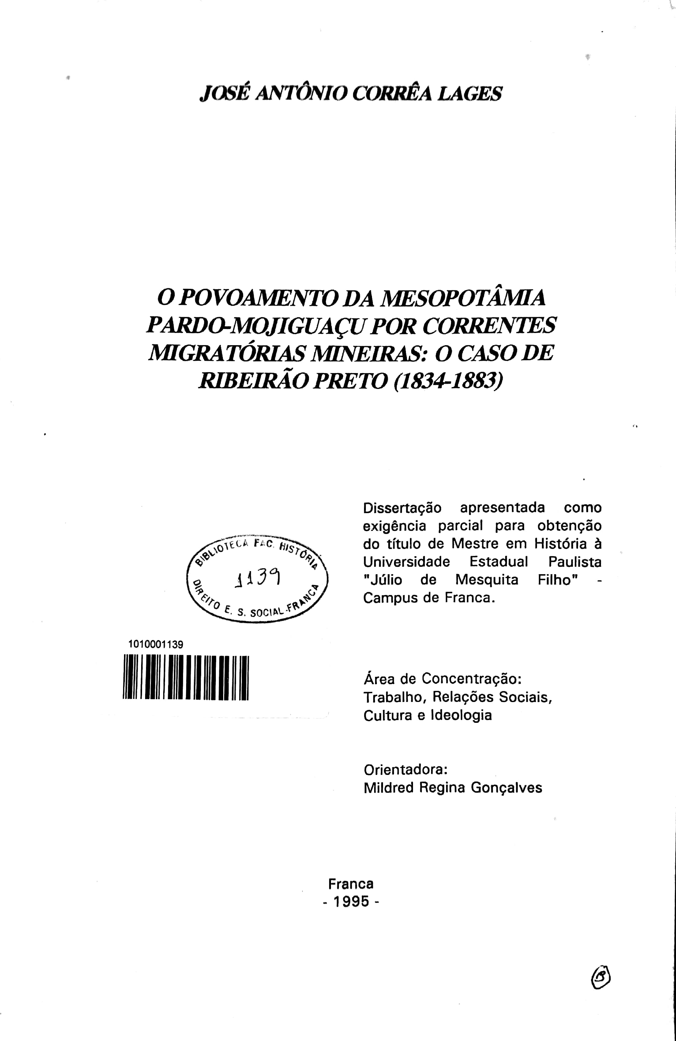 Povoamento da Mesopotâmia Pardo-Mojiguaçu por Correntes Migratórias: O Caso de Ribeirão Preto (1834-1883)
