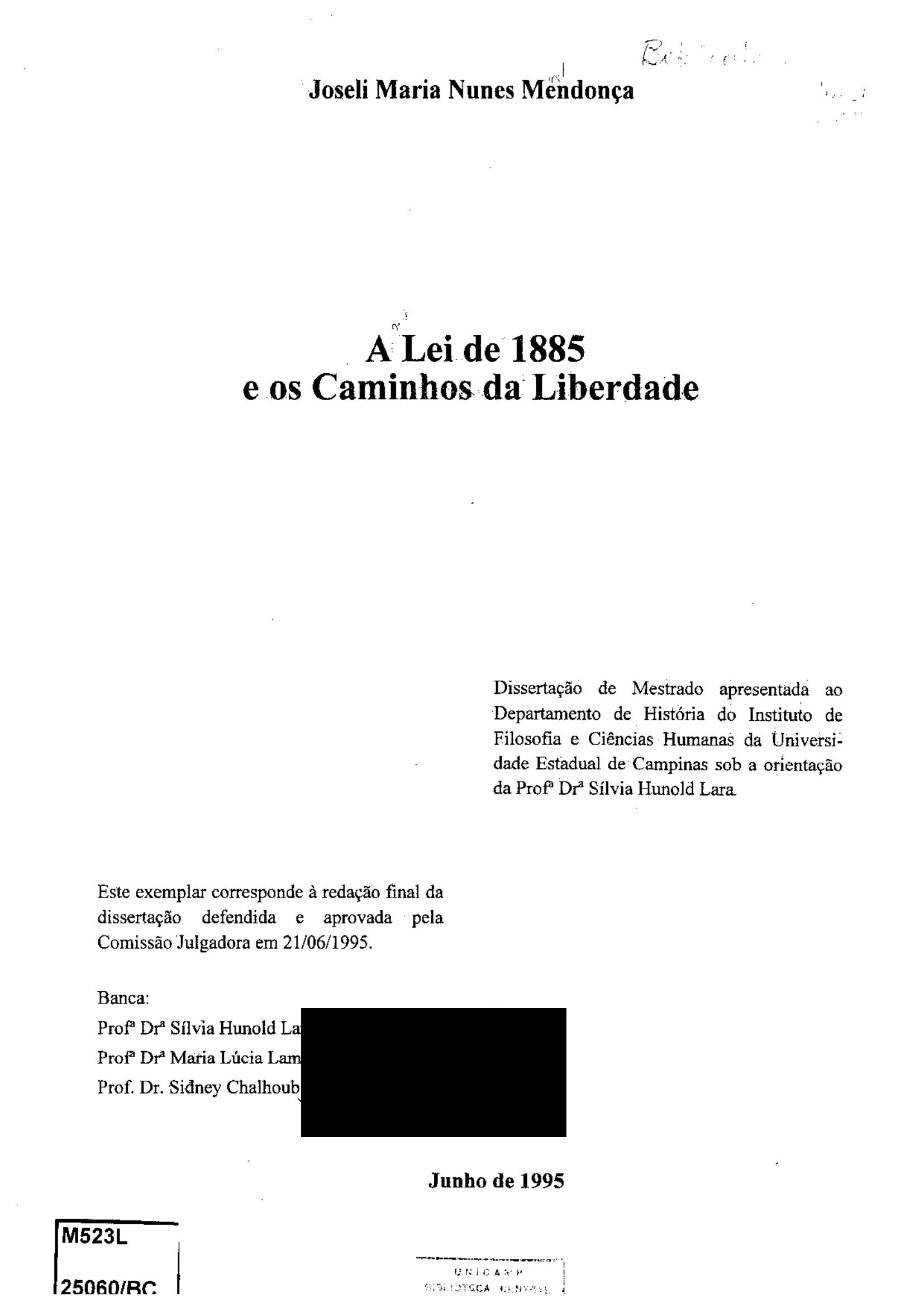 Joseli Maria Nunes Mendonça (Orientador: Silvia Hunold Lara)