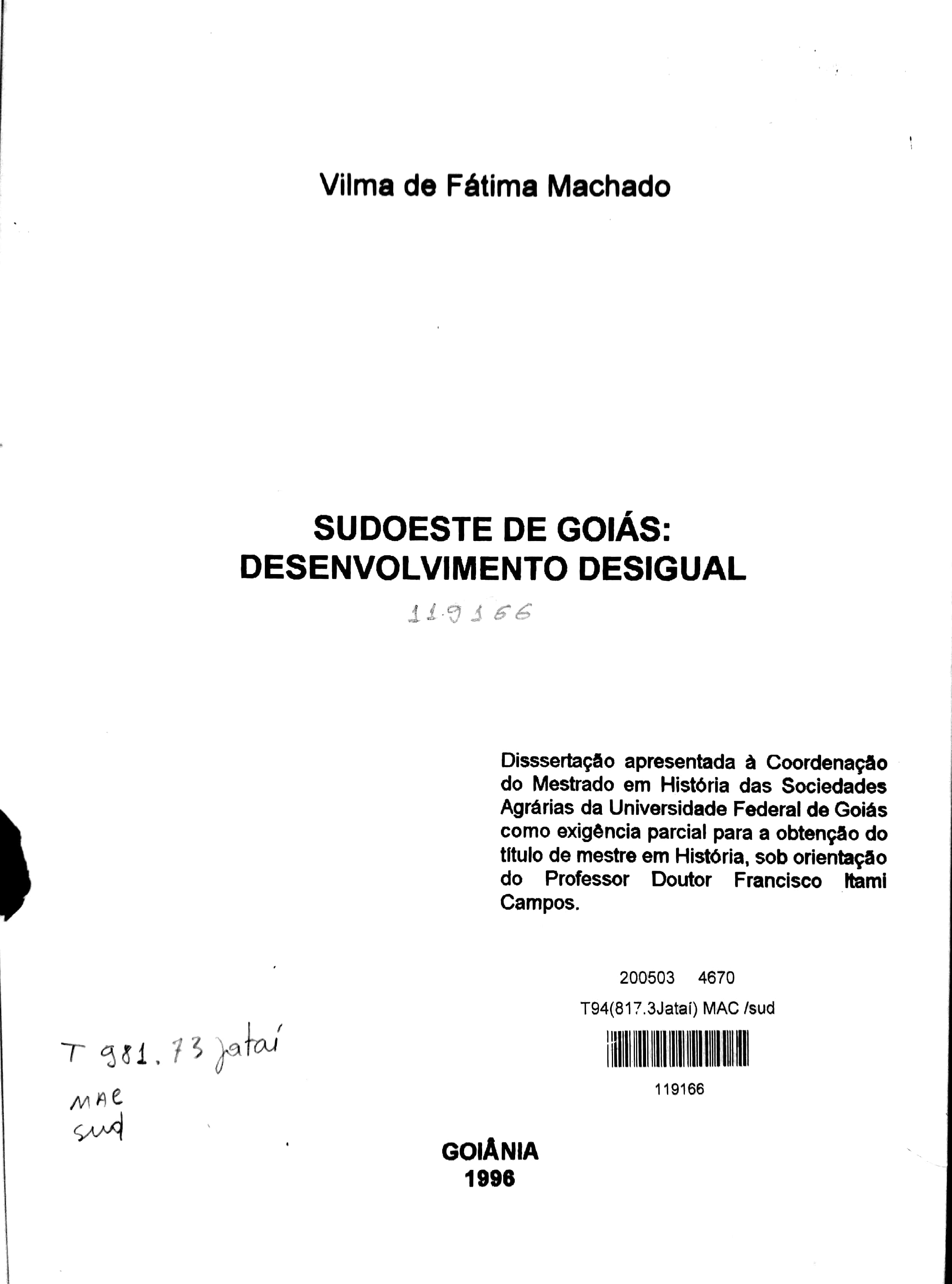 A partir da compreensão da questão do desenvolvimento desigual como elemento essencial à reprodução do sistema capitalista, procura-se neste trabalho analisar, sob o aspecto econômico, a configuração desta desigualdade na região Sudoeste de Goiás. Mais especificamente, procura-se analisar o desenvolvimento econômico do município de Jataí, na tentativa de compreender os elementos que condicionaram a sua inserção tardia no processo de "modernização" da região, advindo com a expansão do cultivo da soja. |