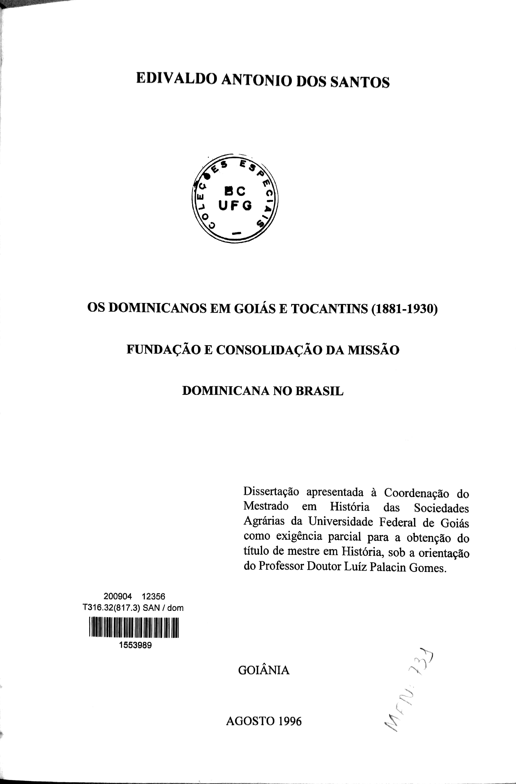 Este estudo apresenta o trabalho missionário da Ordem dos Frades Pregadores (dominicanos) realizado em Goiás e Tocantins no período de 1881 a 1930, descrevendo a sua trajetória no Brasil Central e procurando aprofundar o apostólico e cultural de sua o presença entre os índios e os sertanejos. Esta Dissertação procura mostrar a contribuição dos dominicanos para a sociedade goiana, a relação dos frades dominicanos com o Movimento de Romanização da Igreja no Brasil e a evangelização pacífica desenvolvida por eles. A presente dissertação prioriza as ações iniciais, ou seja, os fatos referentes à fundação e a consolidação da Missão Dominicana no Brasil. As principais fontes utilizadas foram: a) livros e relatórios já publicados pelos próprios missionários; b) PROMEMÓRIA - Boletim Informativo da Província São Tomás de Aquino no Brasil; c) correspondência de 1881 a 1902 que estão no Arquivo Geral da Ordem Dominicana em Roma. Utilizou-se um referencial teórico a partir de uma análise interdisciplinar, procurando utilizar também a mediação da Teologia como um possível referencial teórico para se analisar um fenômeno religioso. Uma análise assim elaborada, permite resgatar para a história a dimensão transcendental da ação evangelizadora do missionário. O estudo apresenta também as interrogações e limites da ação dos missionários dominicanos. |