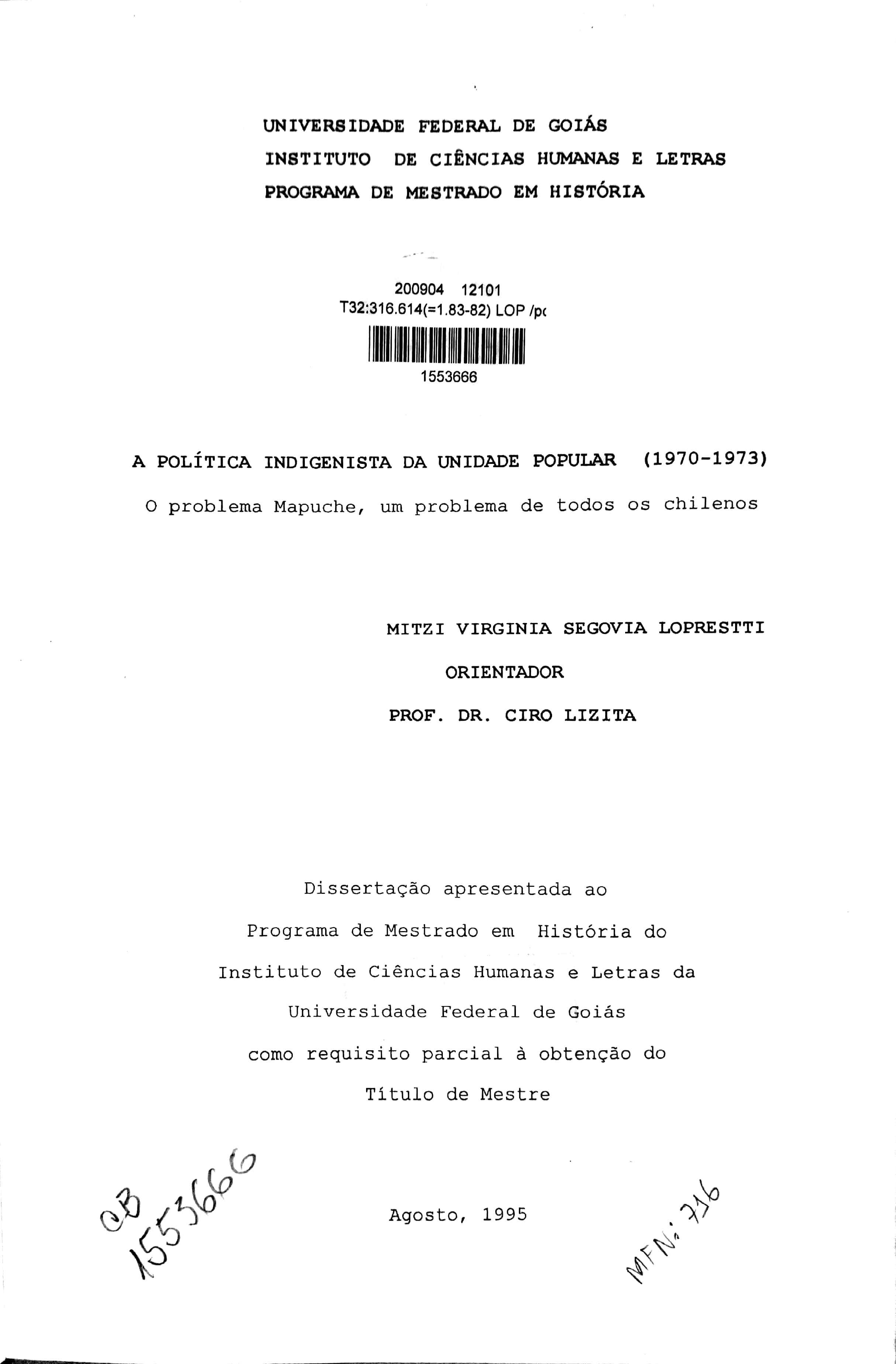 A Política Indigenista da Unidade Popular (1970-1973): O Problema Mapuche, um Problema de Todos os Chilenos