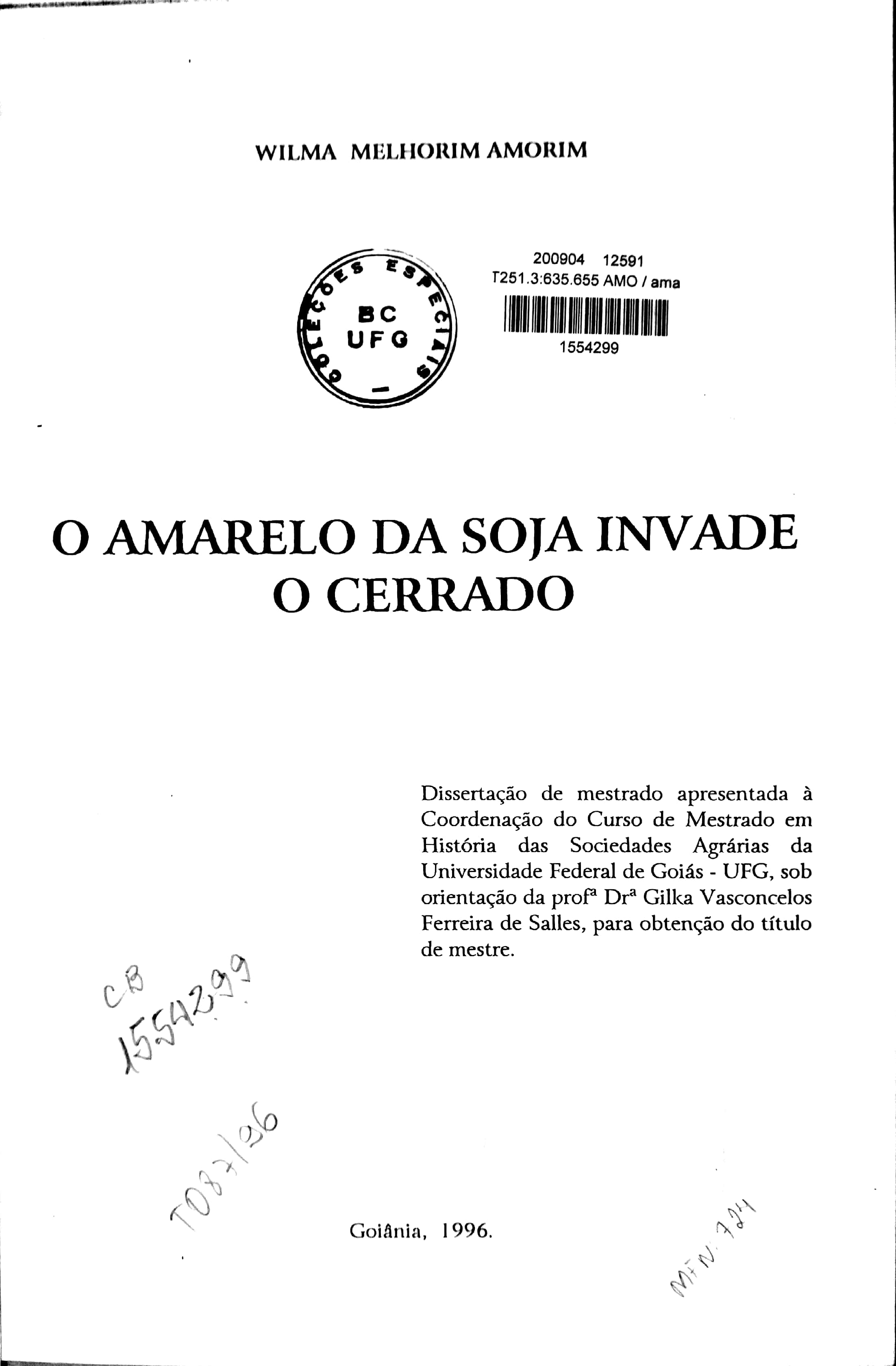 O trabalho se propõe a fazer uma análise da modernização agrícola no Brasil e, sobremaneira, em áreas de Cerrado no Sudoeste de Goiás. Constitui-se, basicamente, em um estudo de caso tendo como objeto de pesquisa "Chapadão do Céu", município goiano que muito bem apresenta essa moderna apropriação agrícola do Cerrado. Além de um suporte teórico embasado em vários autores que tratam do tema e da análise de documentos tivemos no exercício com fontes orais o direcionamento maior dessa pesquisa. A dissertação encontra-se dividida em cinco capítulos: O primeiro apresenta uma retrospectiva histórica sobre a situação agrária brasileira. O segundo capítulo, constitui-se em uma incursão direta na Região Sul do Brasil, já que está nela contida a gênese desse processo modernizador. O terceiro e quarto capítulos, tratam da apropriação agrícola em áreas de Cerrado, nas últimas décadas, apontando os pontos positivos e negativos desse processo, assim como a forma pela qual o mesmo vem se efetivando. E, finalmente, o quinto capítulo vai tratar da questão ambiental na área estudada. |