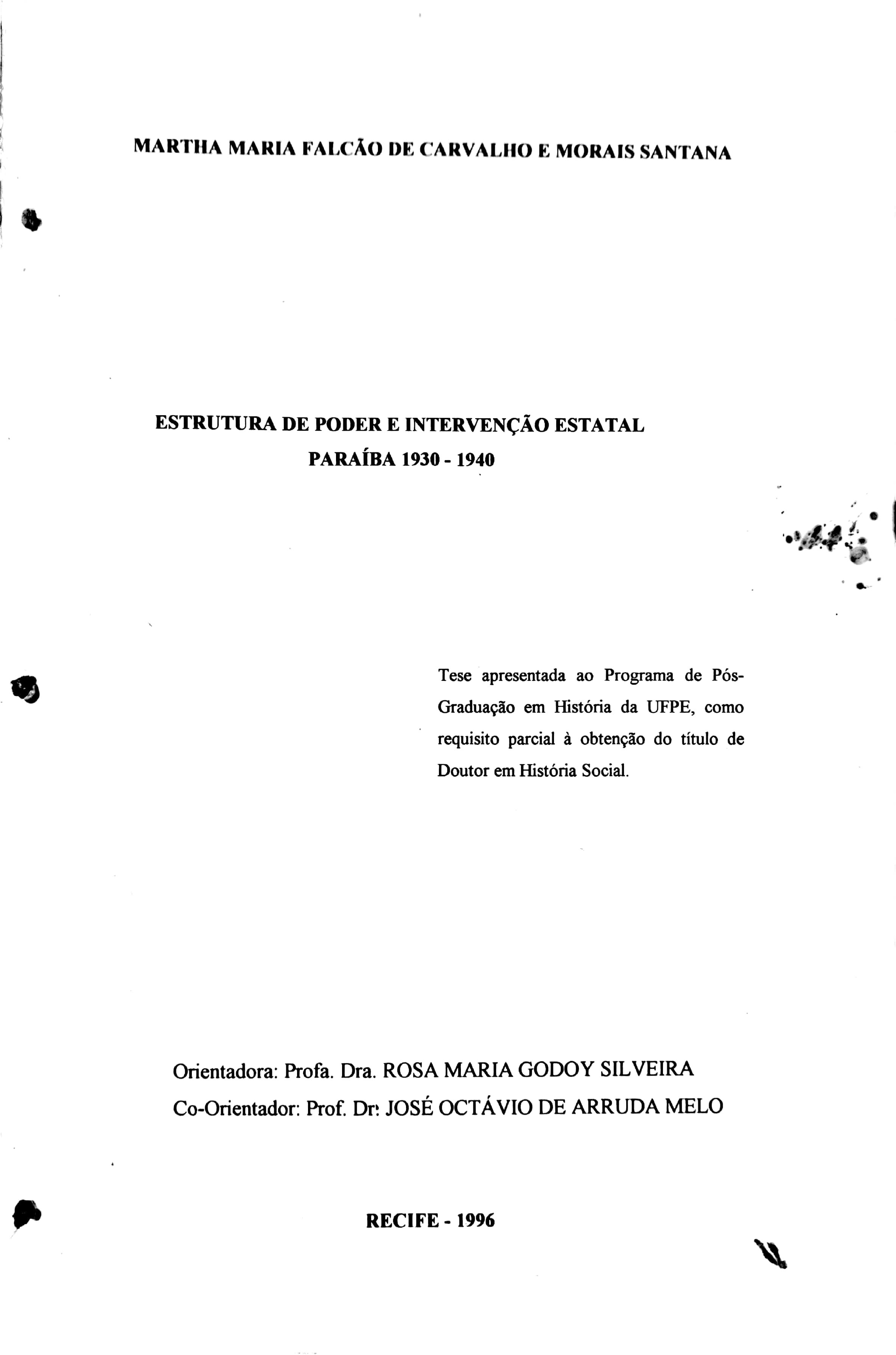 Estrutura de Poder e Intervenção Estatal. Paraíba 1930-1940
