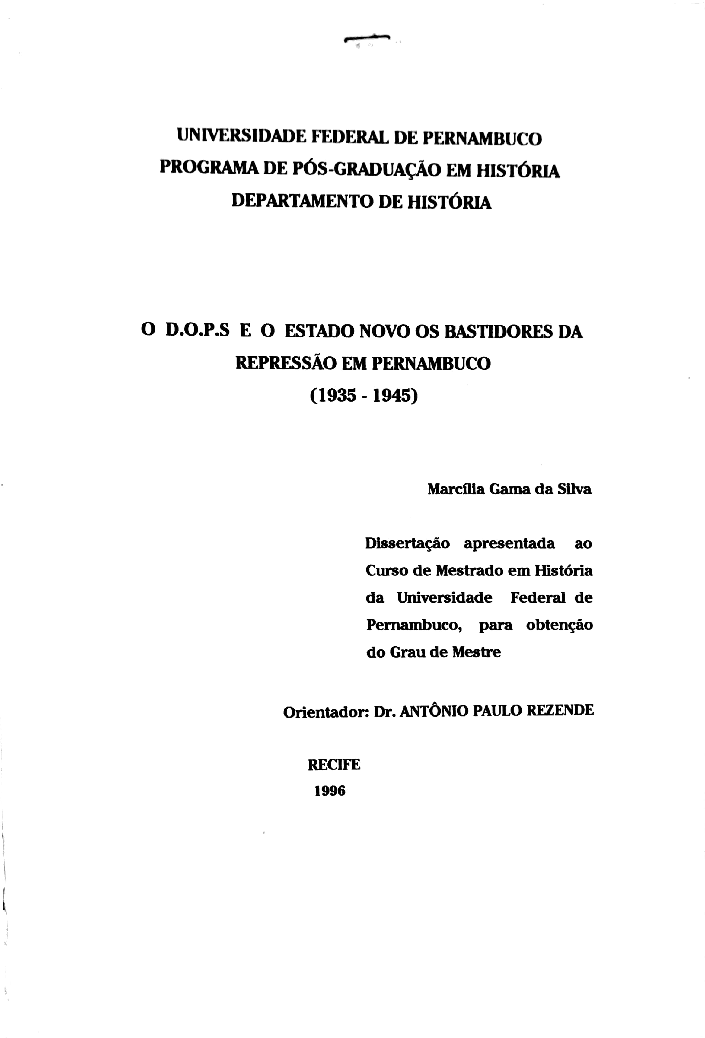 O D.O.P.S. e o Estado Novo: Os Bastidores da Repressão em Pernambuco (1935-1945)