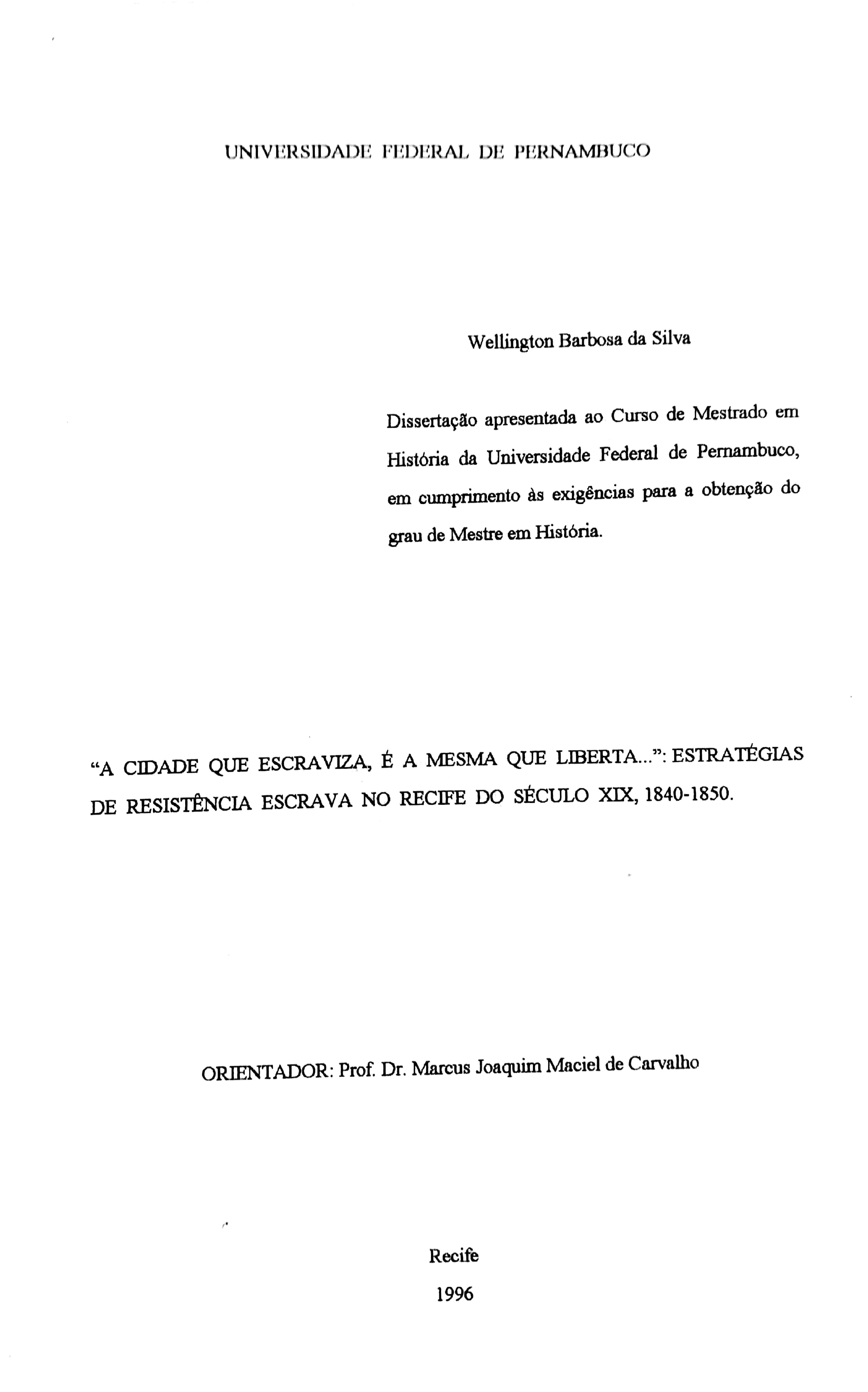 "A Cidade que Escraviza é a Mesma que Liberta...": Estratégias de Resistência Escrava no Recife do Século XIX, 1840-1850
