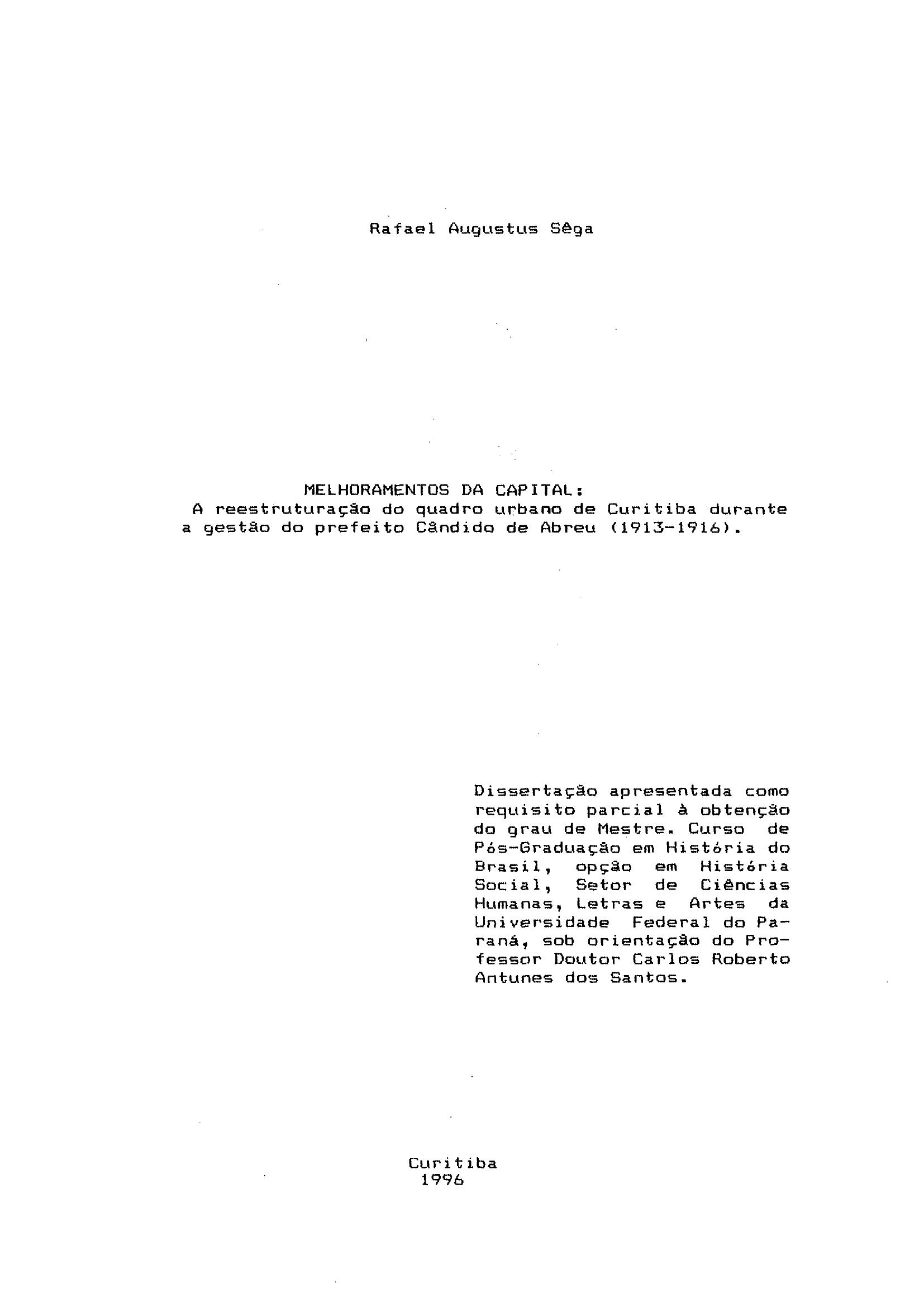 Melhoramentos da Capital: A Reestruturação do Quadro Urbano de Curitiba durante a Gestão do Prefeito Cândido de Abreu (1913-1916)