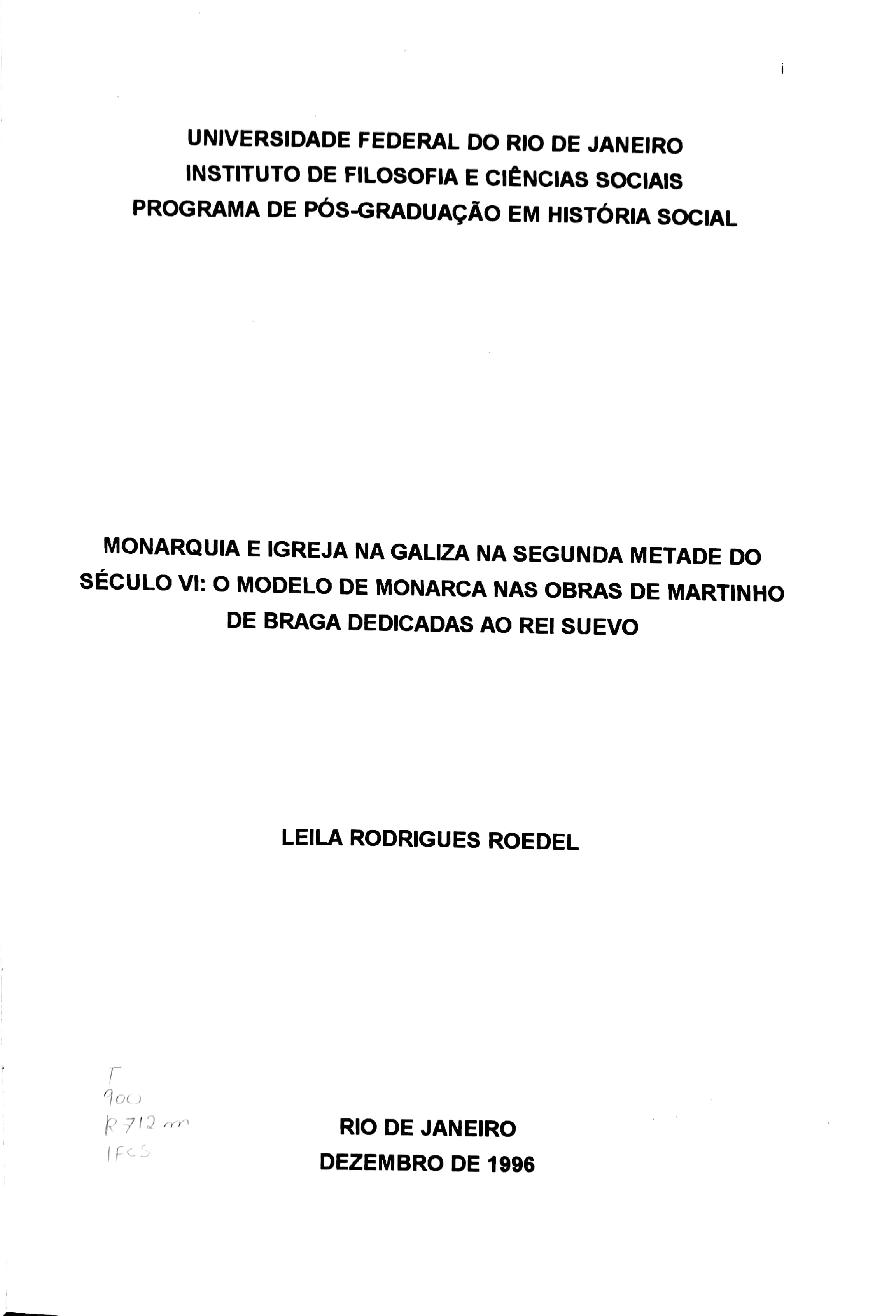 Com o processo de conversão dos suevos, na segunda metade do século VI, verificamos a aproximação entre as autoridades políticas, representantes da Monarquia Sueva, e autoridades religiosas, membros da alta hierarquia da Igreja Galaica. A crescente reorganização e consequente fortalecimento da Igreja na região, possível a partir de tal aproximação, associou-se uma inegável atuação dos membros desta instituição no âmbito político. As autoridades religiosas, ausentes da corte sueva nos anos que antecederam a conversão do monarca, passaram, pois, a desenvolver também neste espaço um trabalho de cristianização e, consequentemente, a apresentar e a destacar a importância dos valores e princípios cristãos. Como parte dessa conjuntura, reconhecemos, no Reino Suevo, a formulação, a partir da especial contribuição de Martinho Braga, de um modelo de monarca cristão, cujos elementos se encontravam presentes nas obras escritas pelo referido bispo e oferecidas ao rei Miro. |