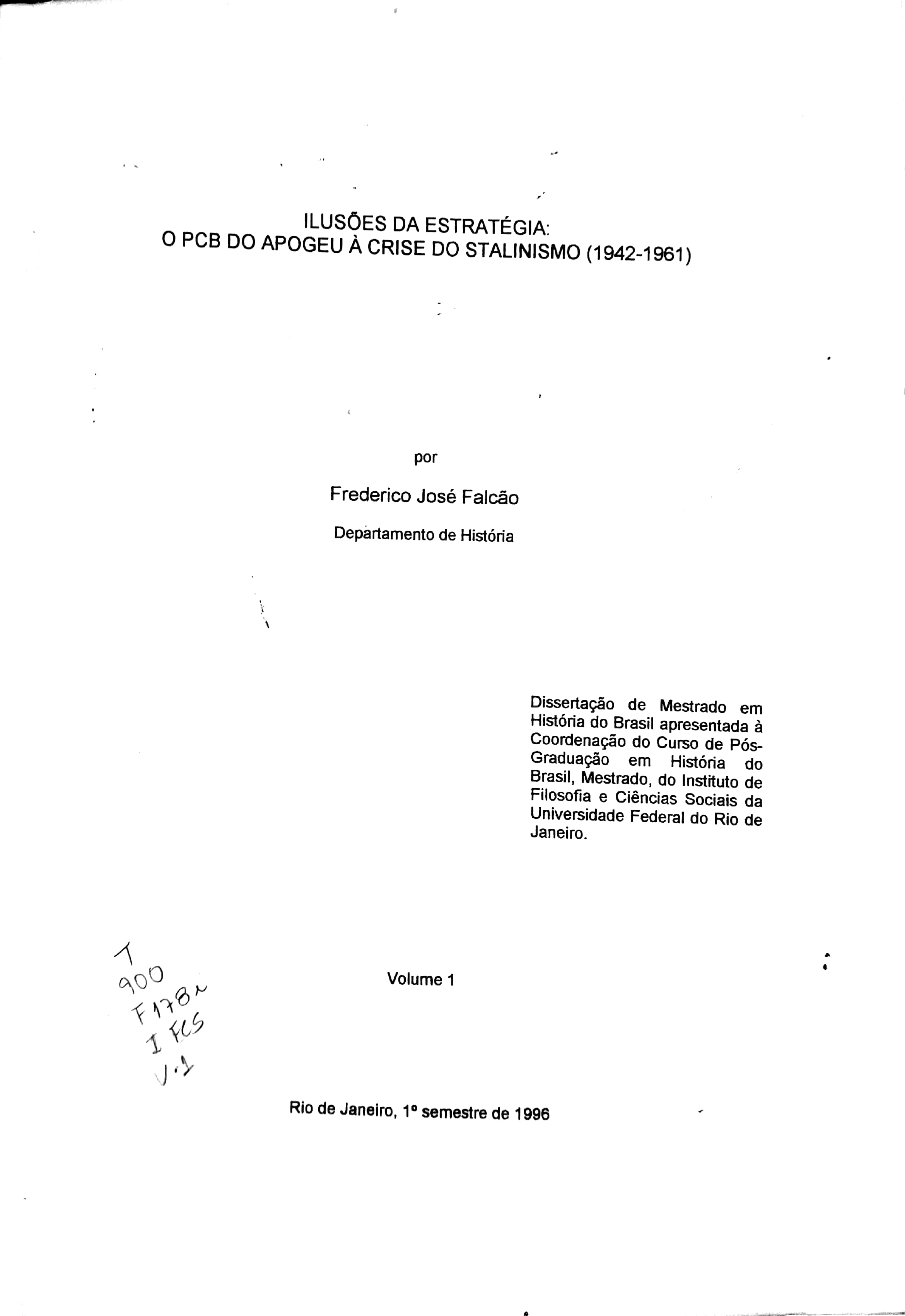 A presente pesquisa tem por objeto o Partido Comunista do Brasil (PCB) quando mais estava em evidência, em seu interior, o denominado "stalinismo", influência político-ideológica soviética e de seu líder Stalin. Procura-se demonstrar as consequências no Brasil da crise desse modelo a partir das denúncias formuladas contra Stalin em 1956. A trajetória do PCB é analisada, utilizando-se inclusive documentação inédita, desde os anos 40, quando de sua organização e legalização, passando pelos entraves criados pela Guerra Fria (retorno à clandestinidade e radicalização do discurso). Isso objetiva apontar os elementos que levaram a cisão de 1956/7 e o surgimento de grupos de esquerda marxista críticos da política pecebista, delineando o início da perda de hegemonia do PCB nesse setor da política brasileira. Perpassa o trabalho a crítica da estratégia de revolução burguesa defendida pelo PCB para o país, frente a um Brasil já em franco desenvolvimento capitalista e uma classe operária desprovida de um instrumental político de caráter socialista, o qual o Partido que se propunha representá-la recusava-se a formular. |