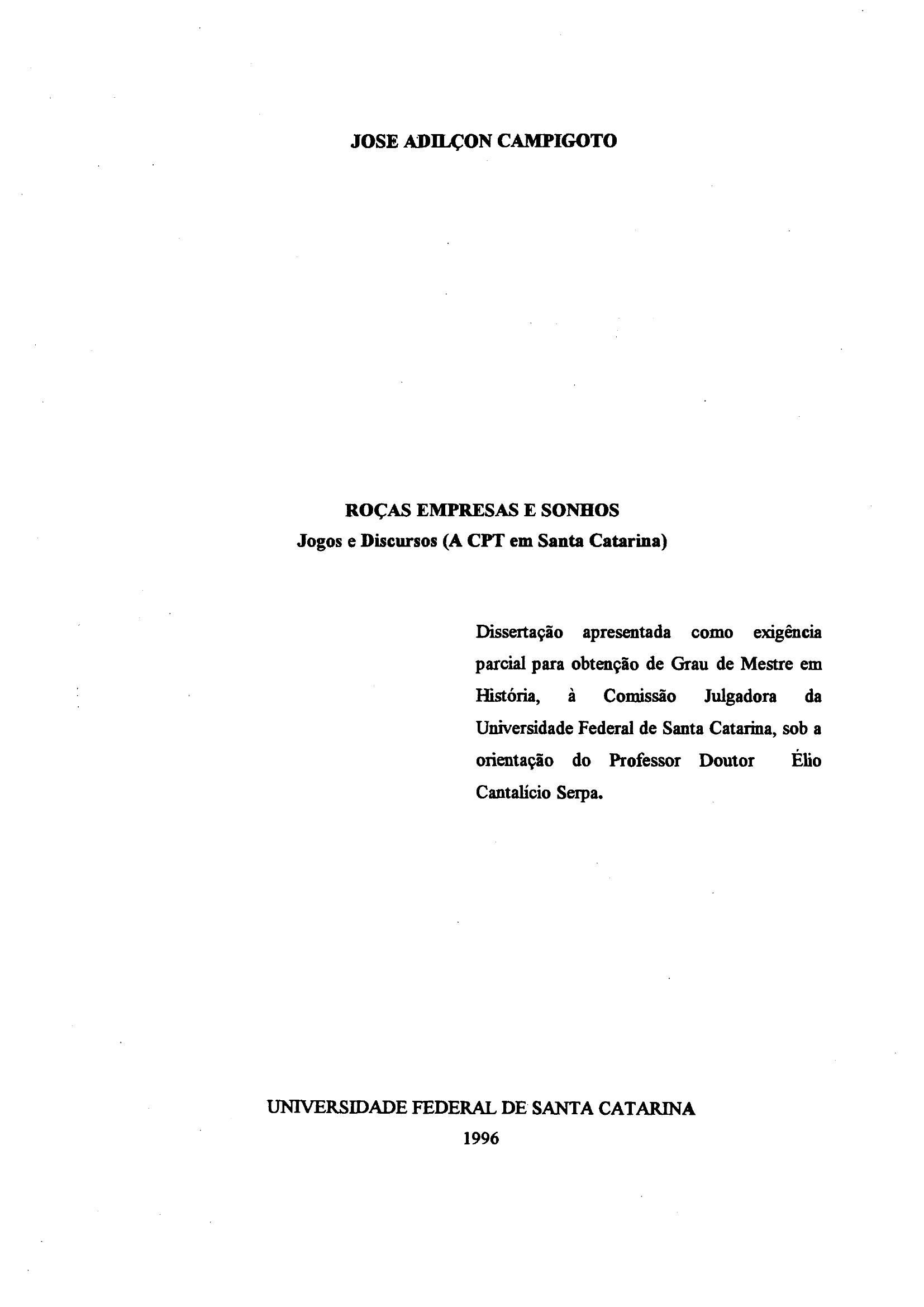 Roças, Empresas e Sonhos: Jogos e Discursos (A CPT em Santa Catarina)