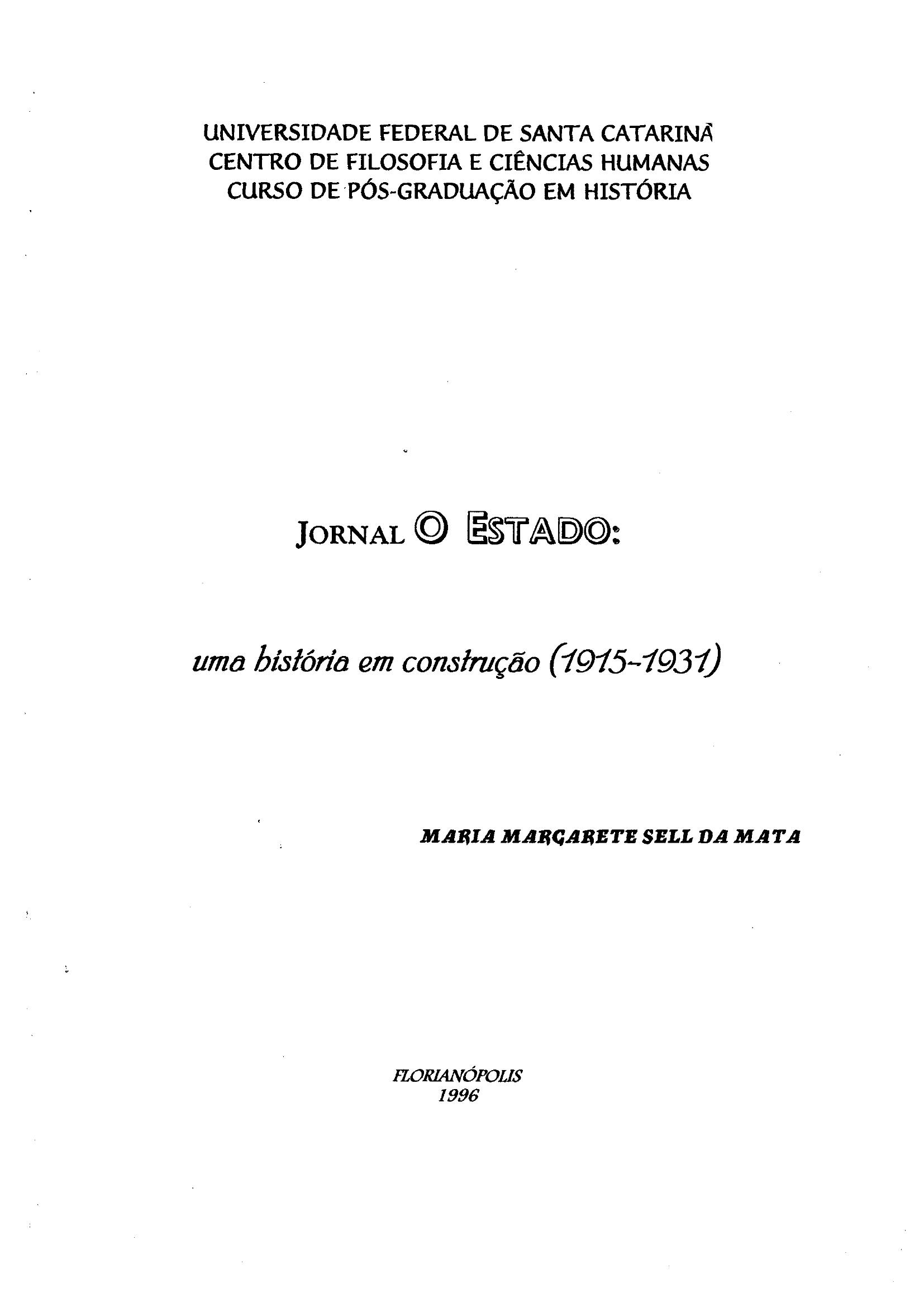 Jornal O Estado: Uma História em Construção (1915-1931)
