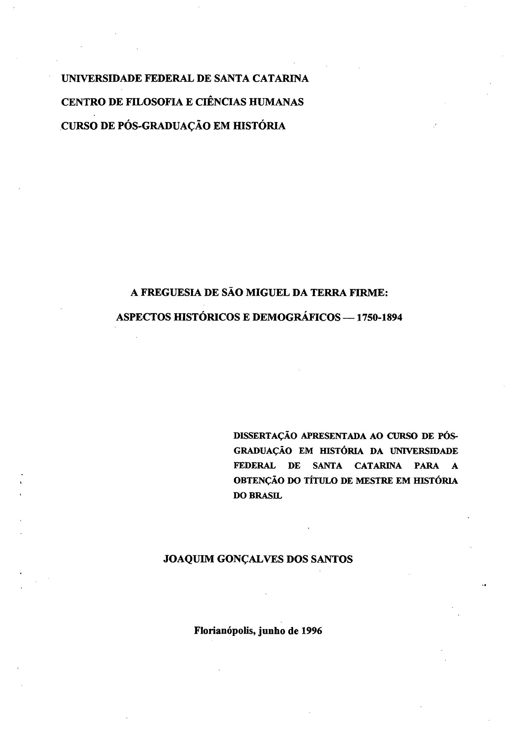 A Freguesia de São Miguel Arcanjo "da Terra Firme", tema desta dissertação, foi uma das primeiras freguesias a se instalarem no continente, face à Ilha de Santa Catarina e próxima à Fortaleza de Santa Cruz em Anhatomirim. Foi povoada, predominantemente, por contingentes açorianos, africanos, luso-brasileiros e imigrantes europeus não portugueses. Para o trabalho, os subsídios foram buscados em registros paroquiais de eventos vitais, em Relatórios e Falias de Presidentes de Província, em correspondências das Câmaras Municipais de São Miguel e de Biguaçu, dos Arciprestes e Vigários, dos Chefes de Policia, da Inspetoria de Higiene Pública, dos Arquivos do Fórum da Comarca de Biguaçu, em jornais do Desterro e de Tijucas, em entrevistas e outros documentos. A população livre e escrava apresentava um comportamento tradicional quanto aos casamentos e nascimentos, procurando respeitar as interdições religiosas e os costumes. A mortalidade estava relacionada às condições sanitárias e de higiene, com epidemias periódicas devido à resistência as medidas de vacinação por parte do governo. Mas São Miguel, que desde sua fundação como freguesia em 1750, era o principal núcleo populacional econômico e político, começou a perder esta primazia a partir de meados do século XIX. O desenvolvimento do vale do Rio Biguaçu, as disputas partidárias e o declínio sócio-econômico da vila de São Miguel, conduziram à progressiva perda de detentora do poder administrativo por este núcleo. Como se processou esta queda e a ascensão de Biguaçu como centro hegemônico foi também analisada, procurando identificar causas e conseqüências. A proposta desta dissertação é de contribuir com mais de um estudo de História do Brasil Meridional acerca de uma freguesia catarinense de origem açoriana, e permitir estudos comparativos no âmbito regional. |