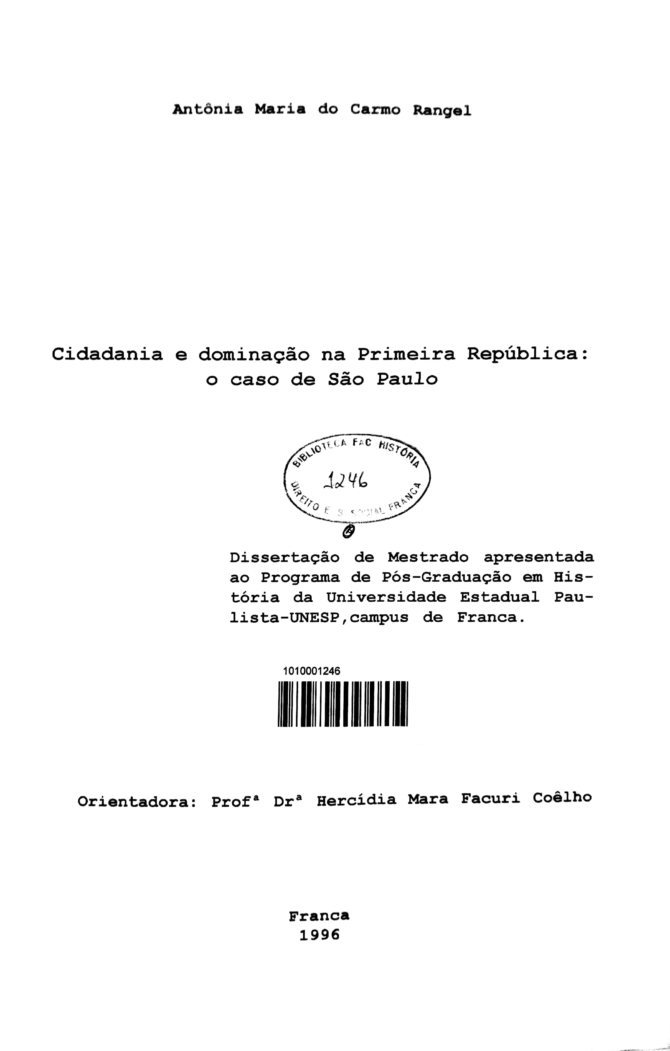Cidadania e Dominação na Primeira República: O Caso de São Paulo