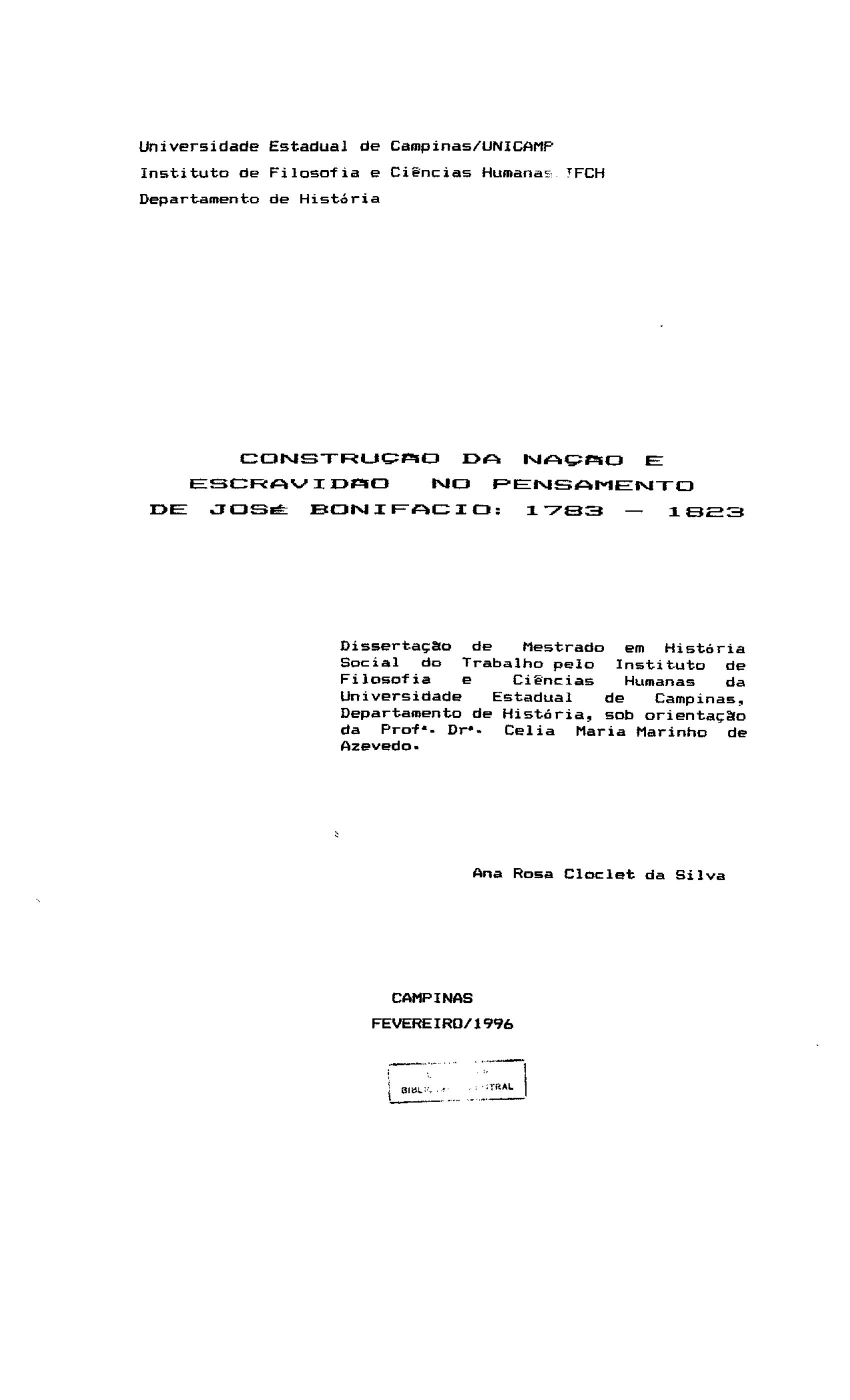 Construção da Nação e Escravidão no Pensamento de José Bonifácio: 1783-1823