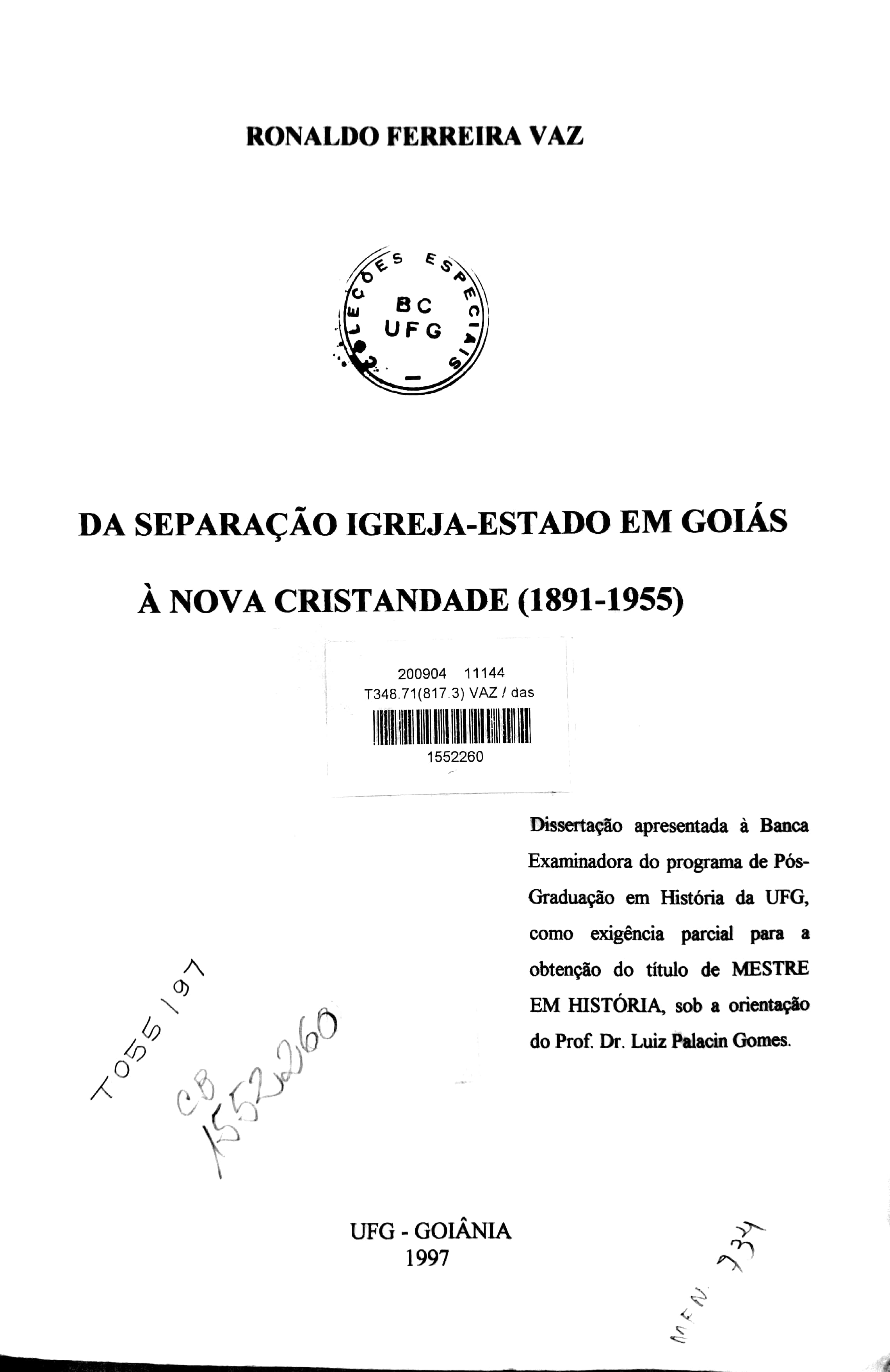 Este trabalho têm como objeto de estudo a Igreja Católica em Goiás no Período compreendido entre 1891 e 1955. O enfoque é centrado na Igreja enquanto instituição jurídica, vista sob a ótica estritamente humana, e sua relação com o Estado, com destaque para - a formação do clero, as finanças do Seminário e da Cúria, a manutenção as igrejas e catedrais, as ordens religiosas estrangeiras - ao longo das gestões de três bispos da Diocese de Goiás - D. Eduardo (1891-1908), D. Prudêncio (1908-1922) e D. Emanuel (1923-1955). Três são as hipóteses principais: a) em Goiás, logo após 1890, ocorreu um choque entre uma Igreja ultramontana/monarquista e um Estado liberal/republicano; b) ao contrário de que outros autores afirmam, a partir de 1890 não se iniciou o movimento de restauração da aliança entre Igreja e Estado, e sim a sua estadualização; c) sob a gestão de D. Emanuel ocorreu a efetivação de uma Neo Cristandade em Goiás. Essas hipóteses contribuem para a resposta de duas questões: o tipo de relacionamento entre Igreja e Estado após a separação entre ambos e de que forma iria a igreja a continuar exercer influência sobre a sociedade e sobre o próprio Estado. Constata-se ainda a condição de ideólogo e de defensor das posições da Igreja e de ordens religiosas nas obras do cônego Trindade e do Prof. Miguel Archângelo, ex-redentorista. Para demonstrar as mencionadas hipóteses analisamos diversas fontes, entre as quais, cartas pastorais, livros contábeis, cartas trocadas entre os bispos e as ordens religiosas, jornais e revistas, atas de reuniões do conselho diocesano e muitos outros documentos. |