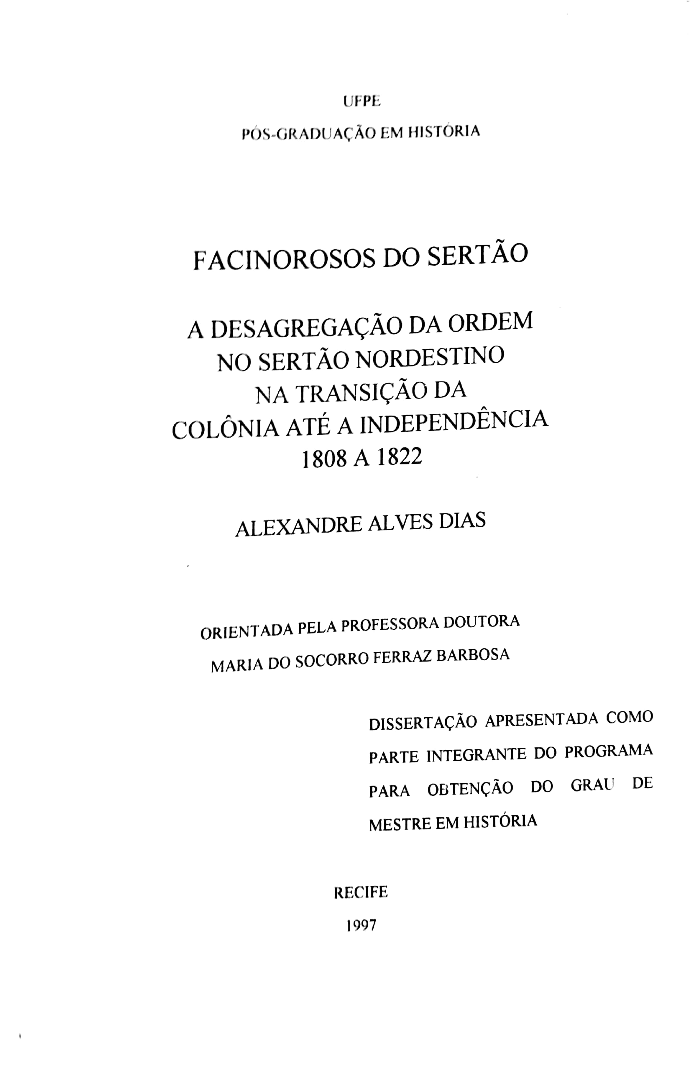 Facinorosos do Sertão: A Desagregação da Ordem no Sertão Nordestino na Transição da Colônia até a Independência. 1808 a 1822