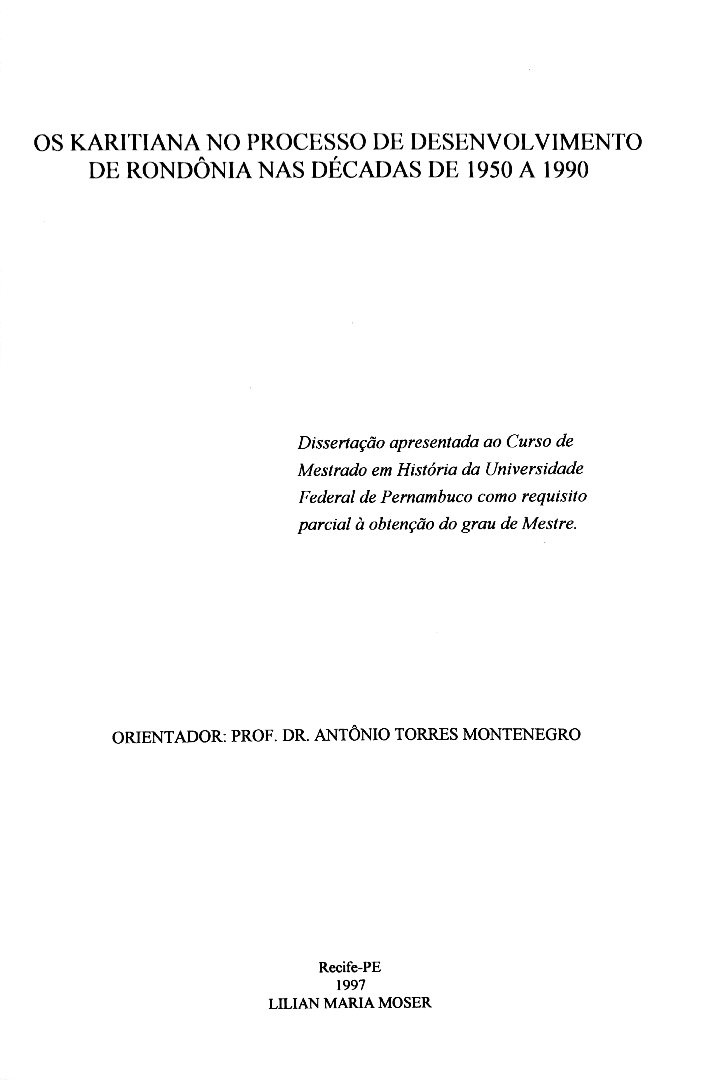 Os Karitiana no Processo de Desenvolvimento de Rondônia nas Décadas de 1950 a 1990