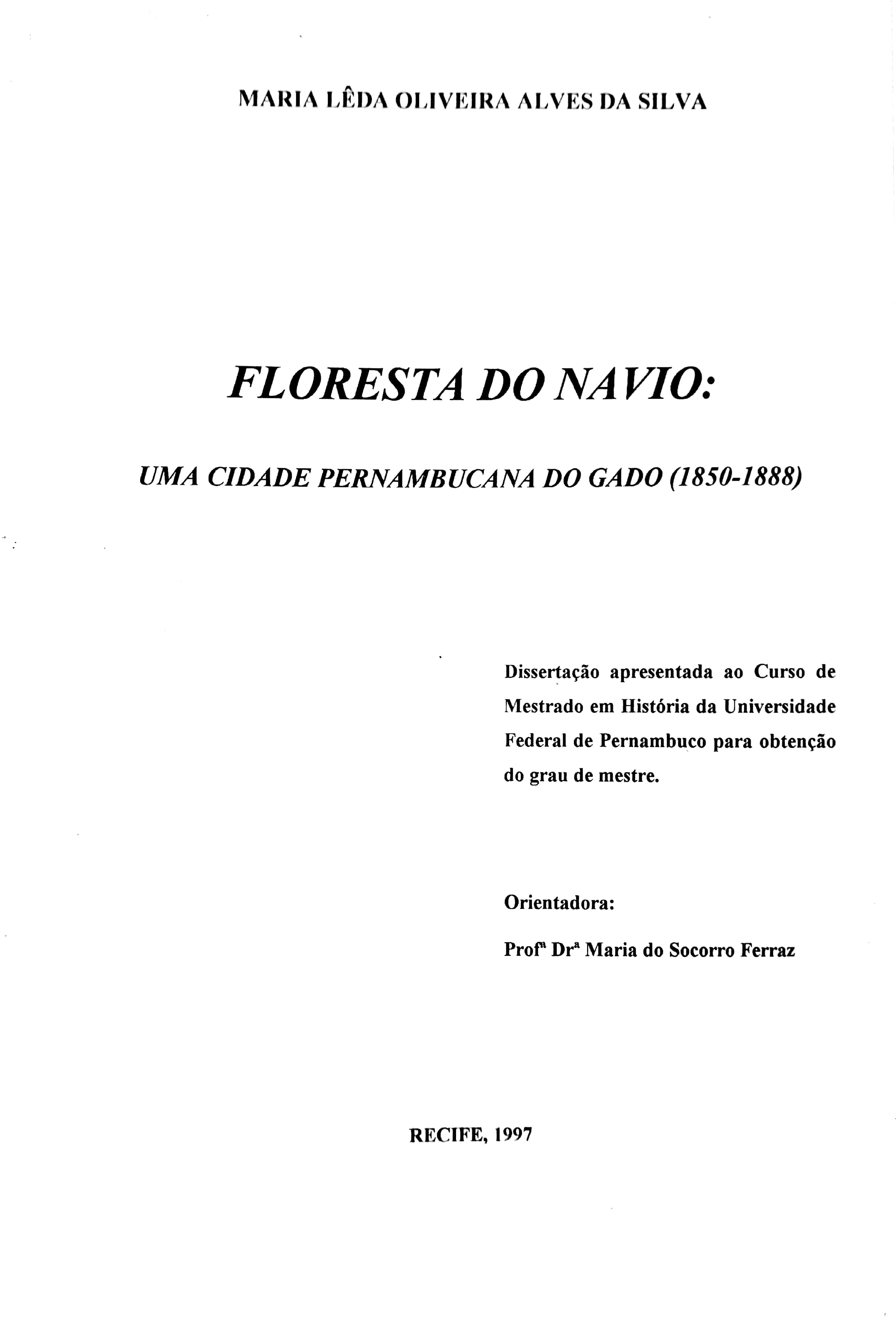 Floresta do Navio: Uma Cidade Pernambucana do Gado (1850-1888)