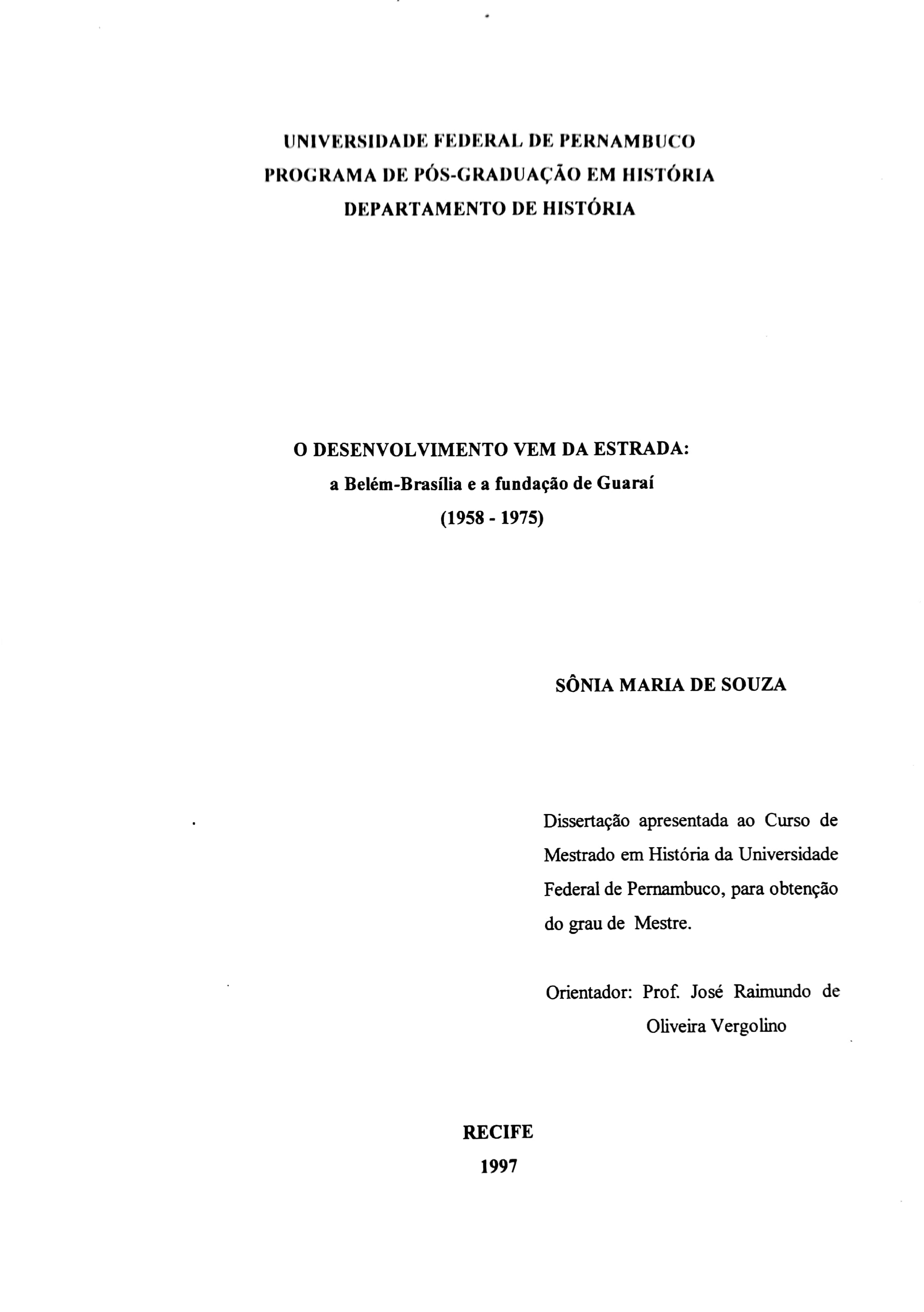 Sônia Maria de Souza (Orientador: José Raimundo Oliveira Vergolino)