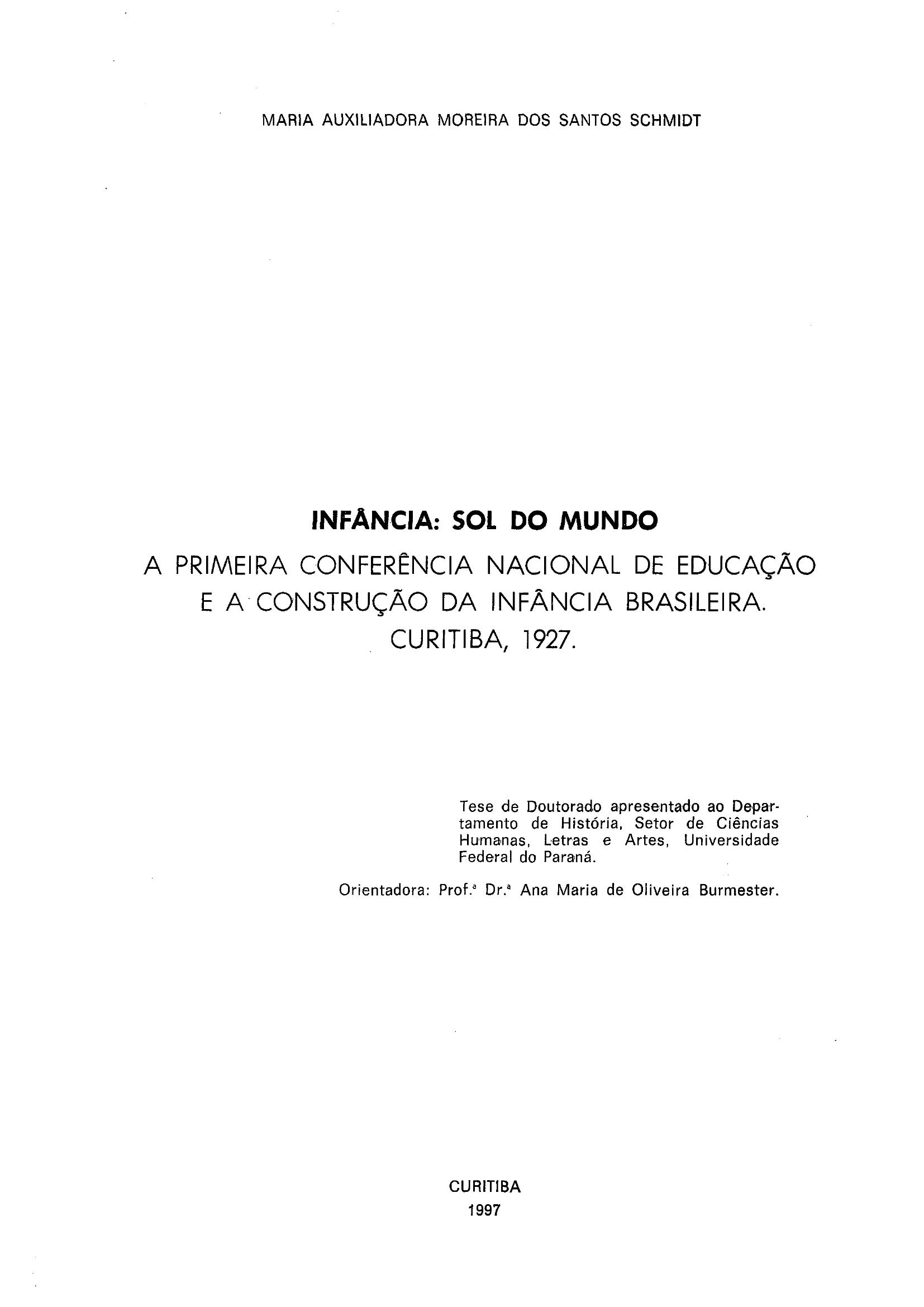 Infância: Sol do Mundo. A Primeira Conferência Nacional de Educação e a Construção da Infância Brasileira. Curitiba, 1927