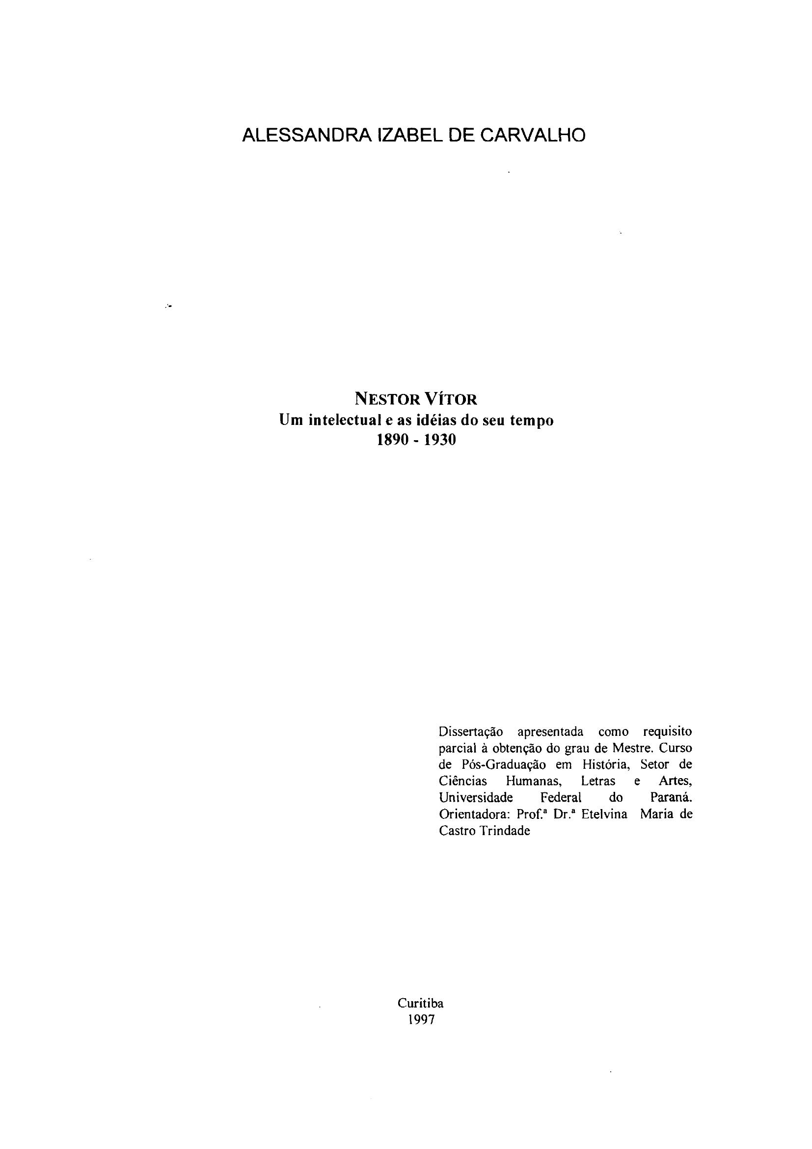 Nestor Vítor: Um Intelectual e as Idéias do seu Tempo, 1890-1930