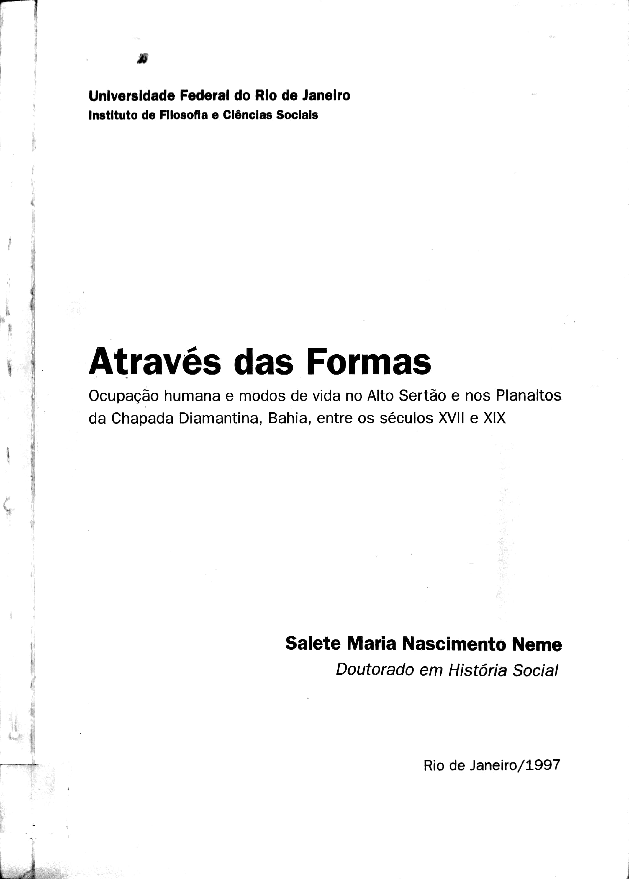 Através das Formas: Ocupação Humana e Modos de Vida no Alto Sertão e nos Planaltos da Chapada Diamantina, Bahia, entre os Séculos XVII e XIX