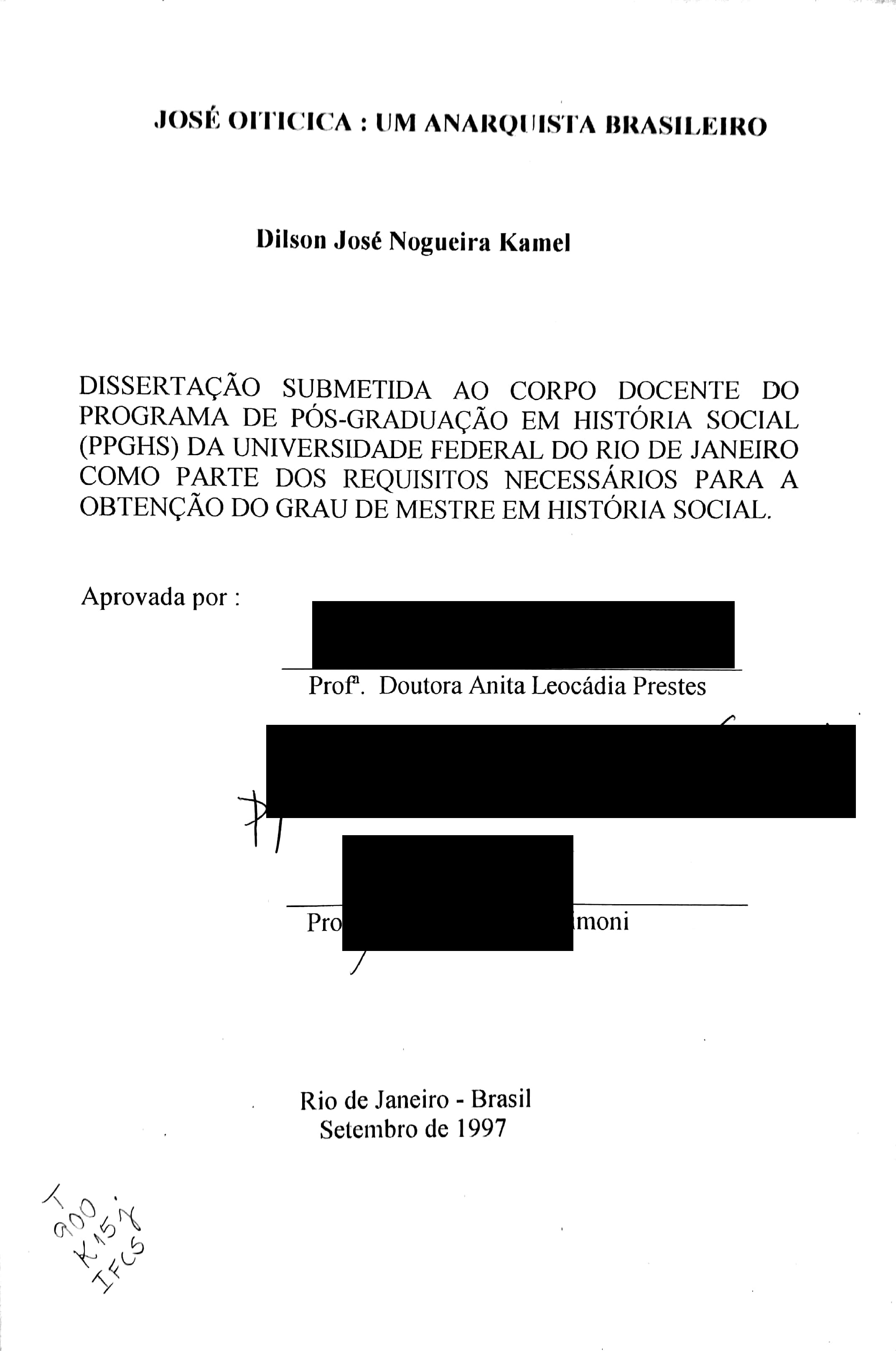 Dilson José Nogueira Kamel (Orientador: Anita Leocadia Prestes)