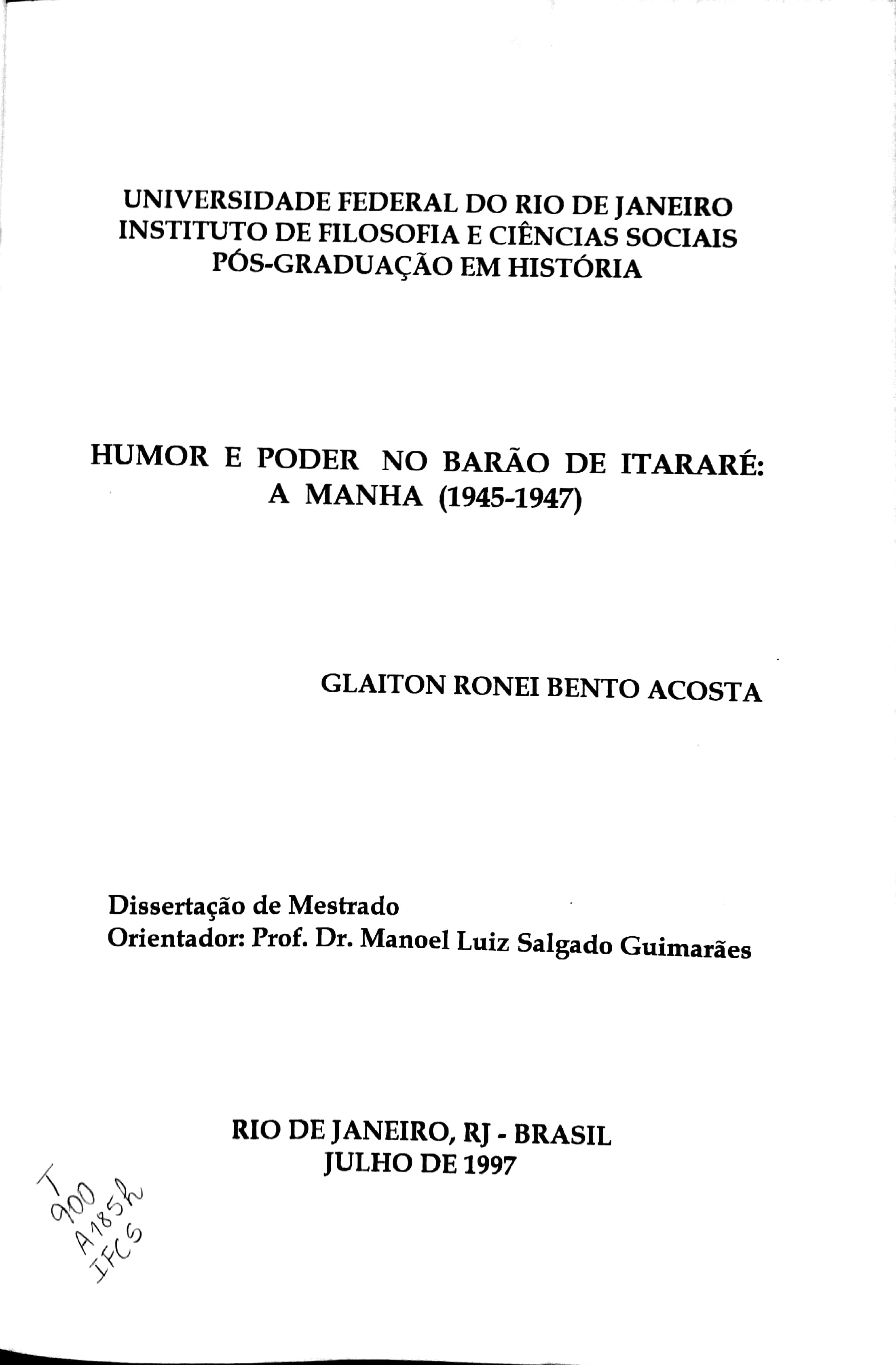 Humor e Poder no Barão de Itararé: A Manha (1945-1947)