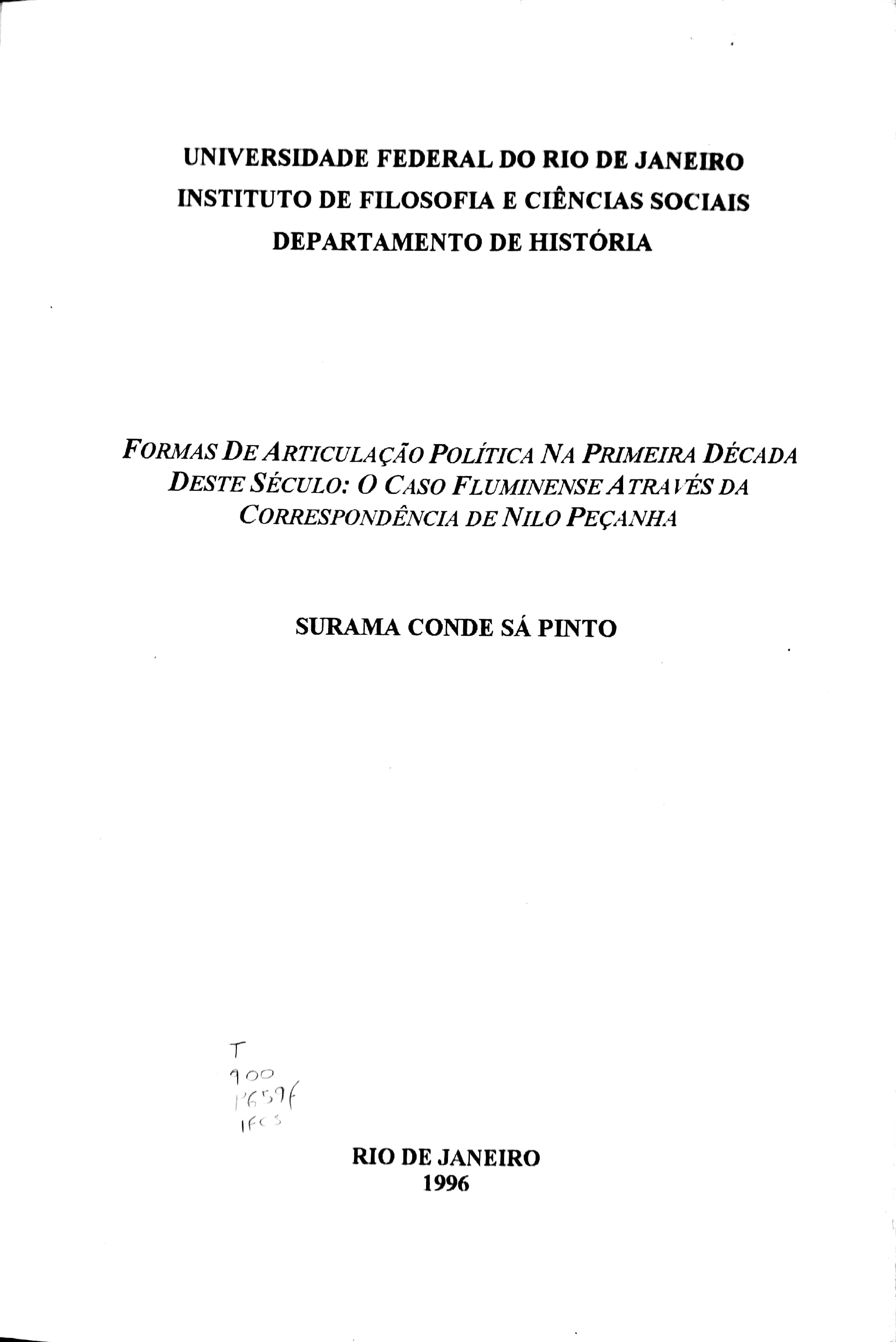 Formas de Articulação Política na Primeira Década deste Século: O Caso Fluminense através da Correspondência de Nilo Peçanha