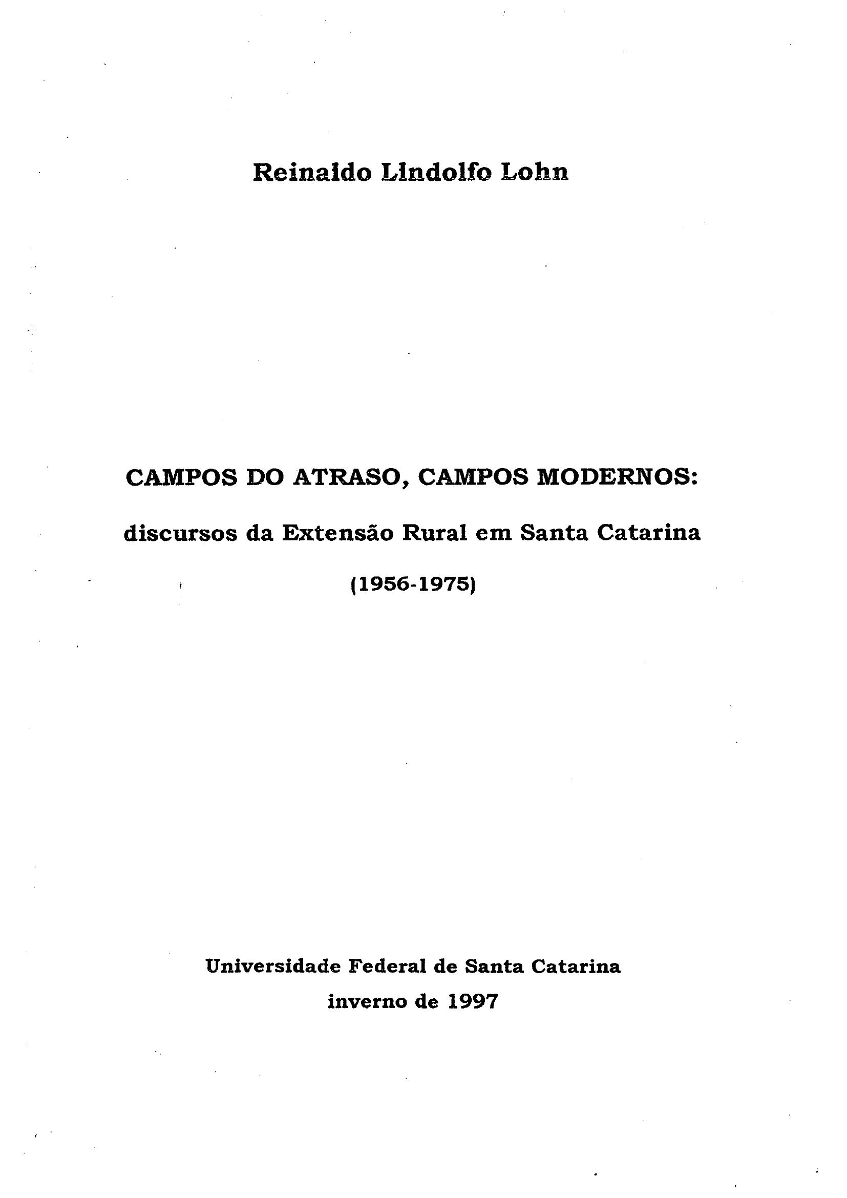 Campos do Atraso, Campos Modernos: Discursos de Extensão Rural em Santa Catarina (1956-1975)