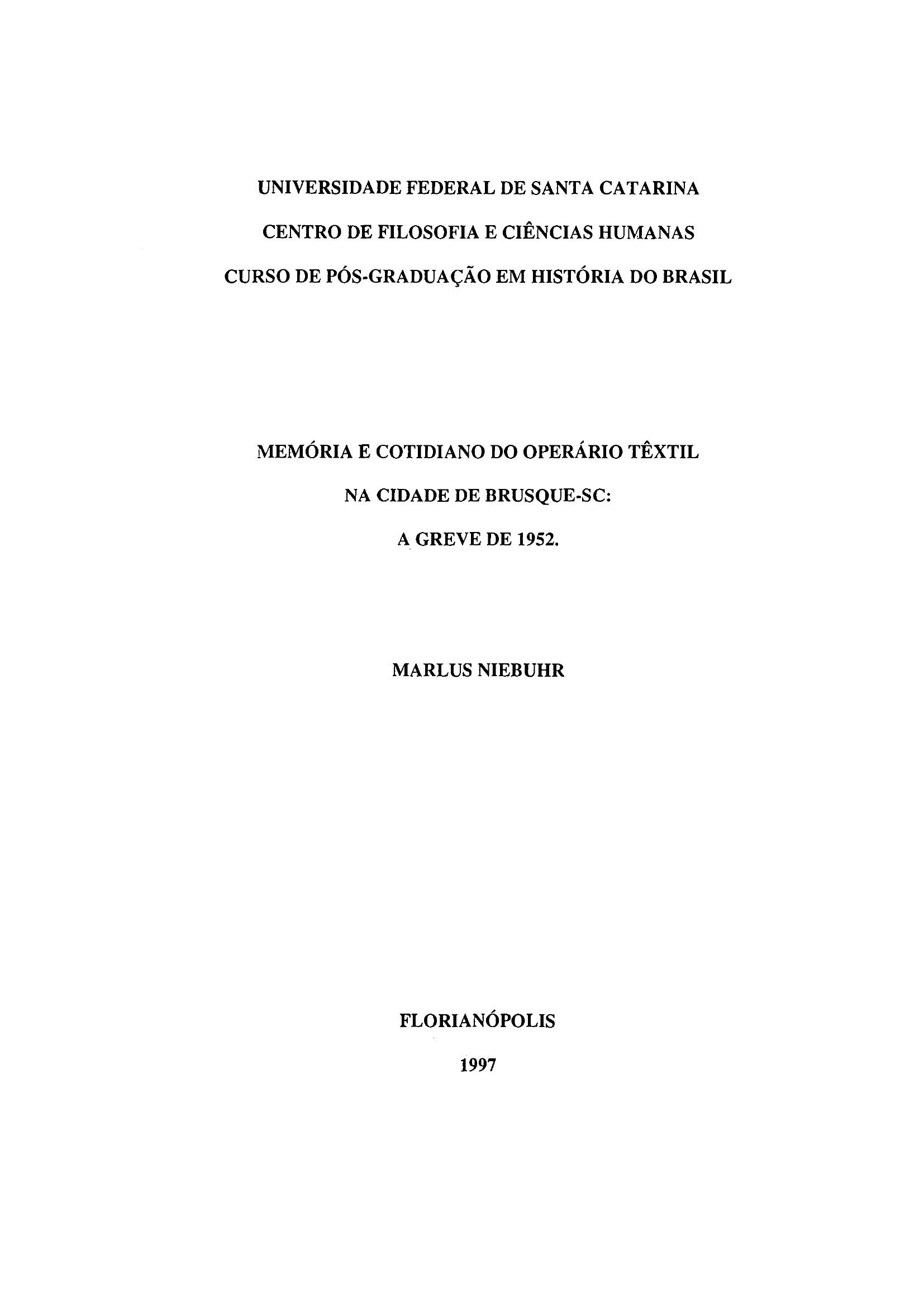 Memória e Cotidiano do Operário Têxtil na Cidade de Brusque-SC: A Greve de 1952