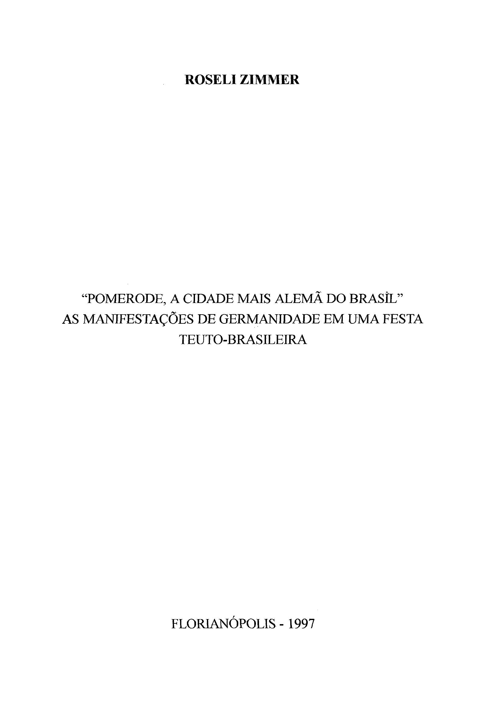 Pomerode, a Cidade Mais Alemã do Brasil. As Manifestações da Germanidade em uma Festa Teuto-Brasileira