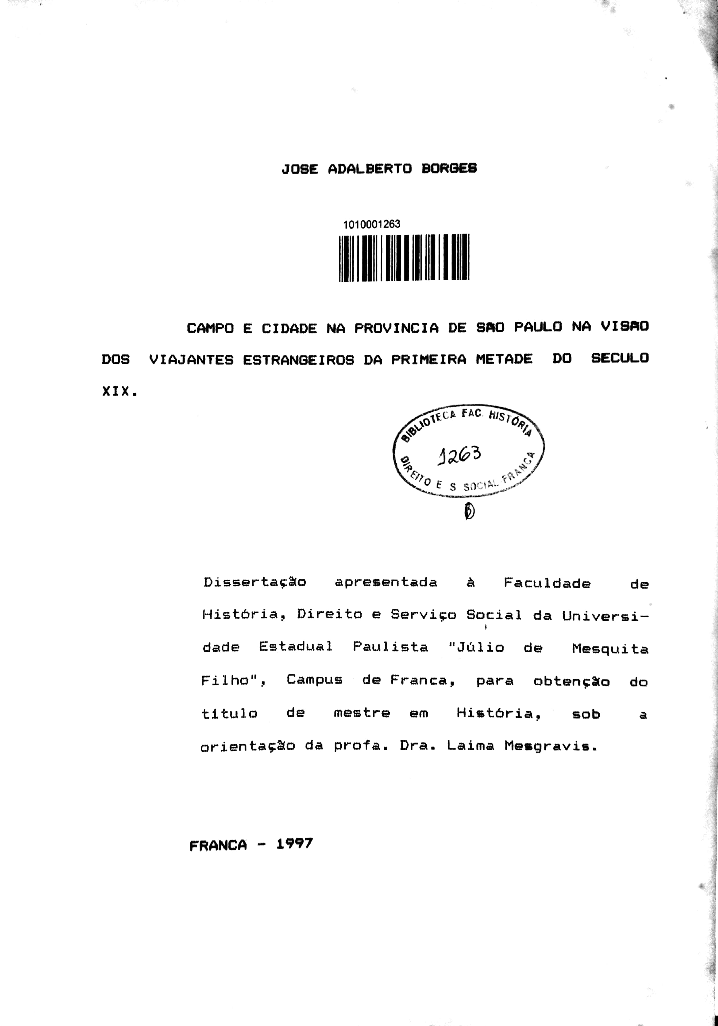 Campo e Cidade na Província de São Paulo na Visão dos Viajantes Estrangeiros da Primeira Metade do Século XIX