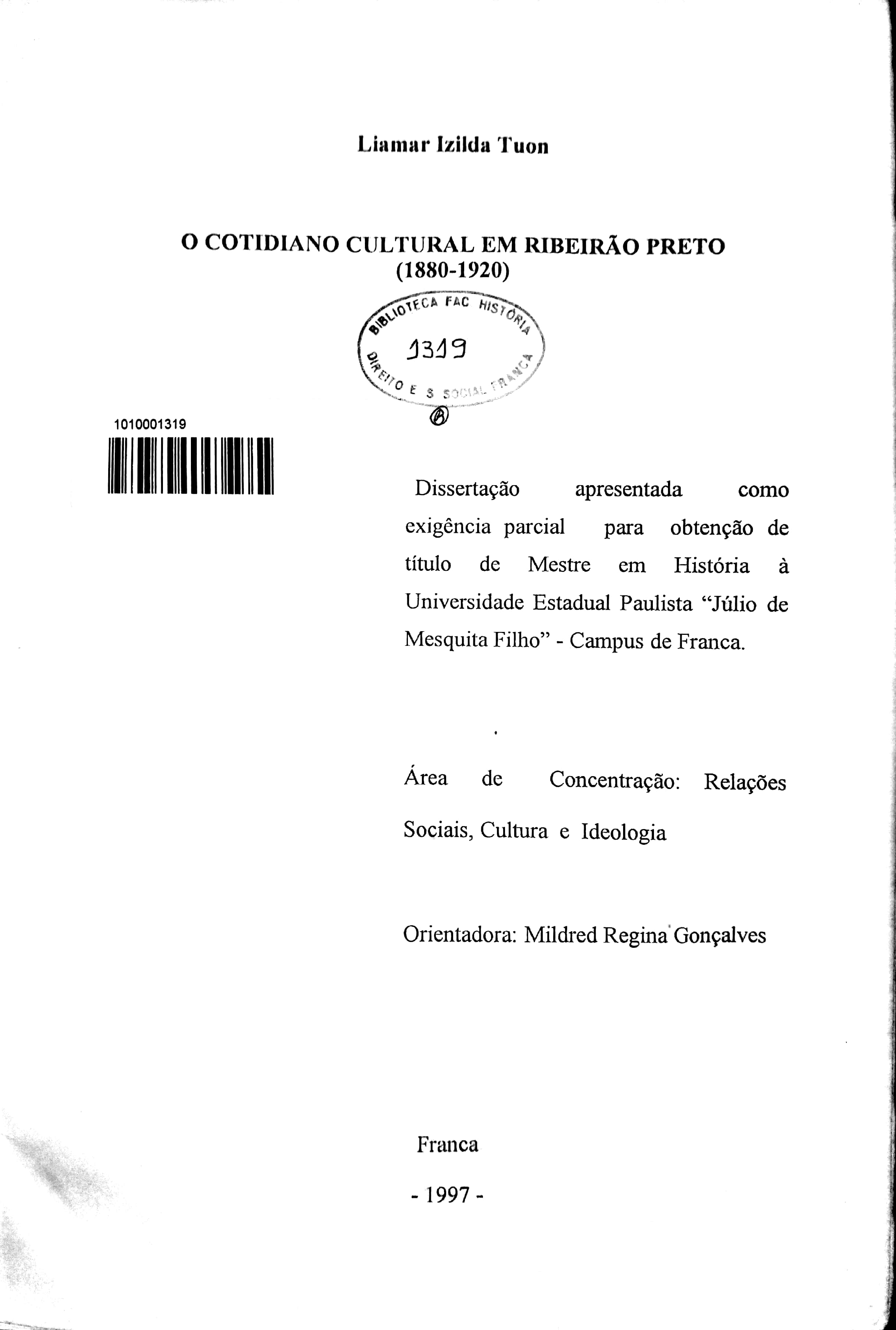 O Cotidiano Cultural em Ribeirão Preto (1880-1920)