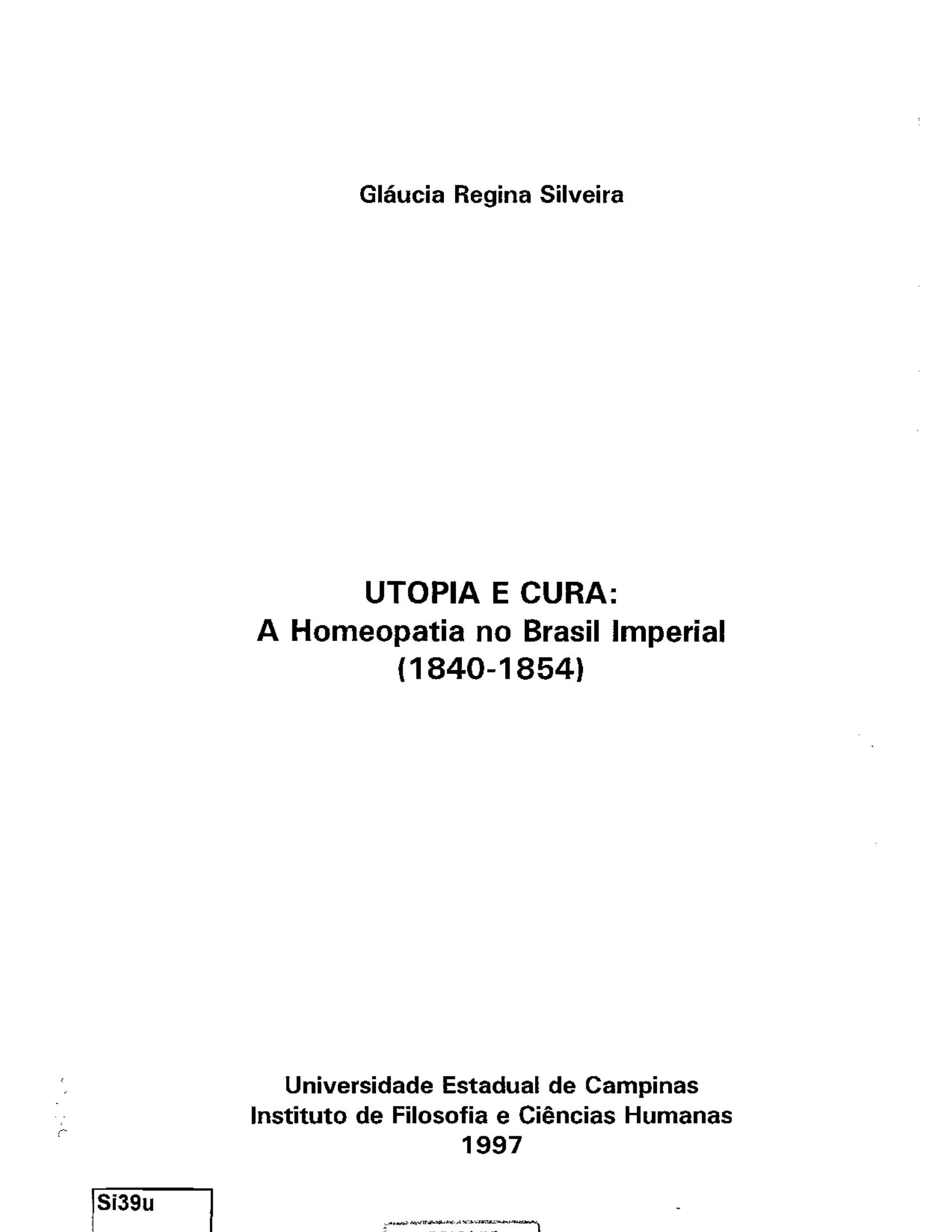 Utopia e Cura: A Homeopatia no Brasil Imperial (1840-1854))