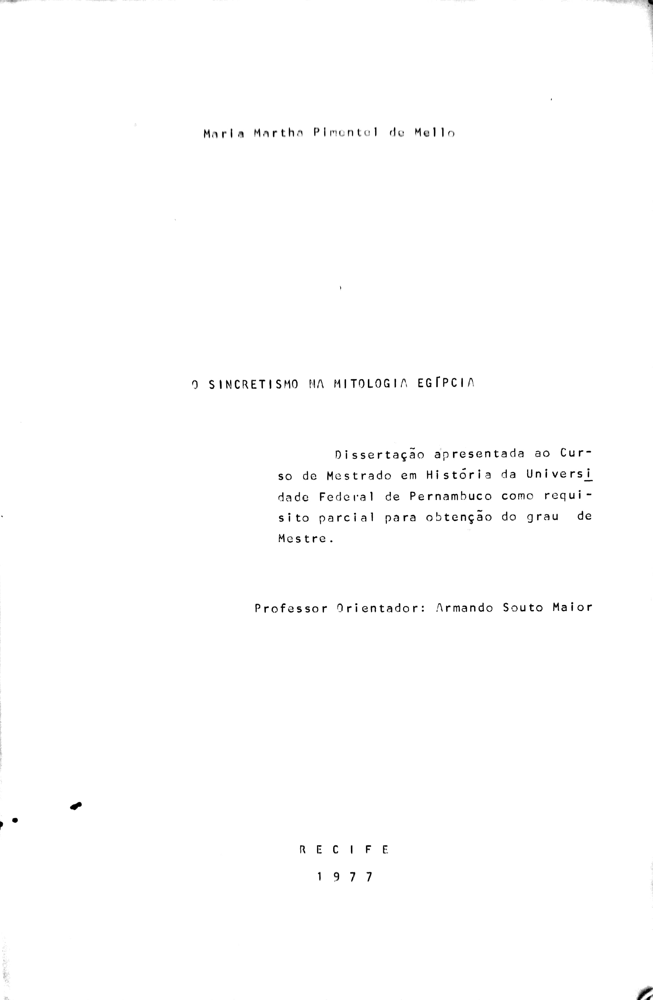 Maria Martha Pimentel de Mello (Orientador: Armando Souto Maior)