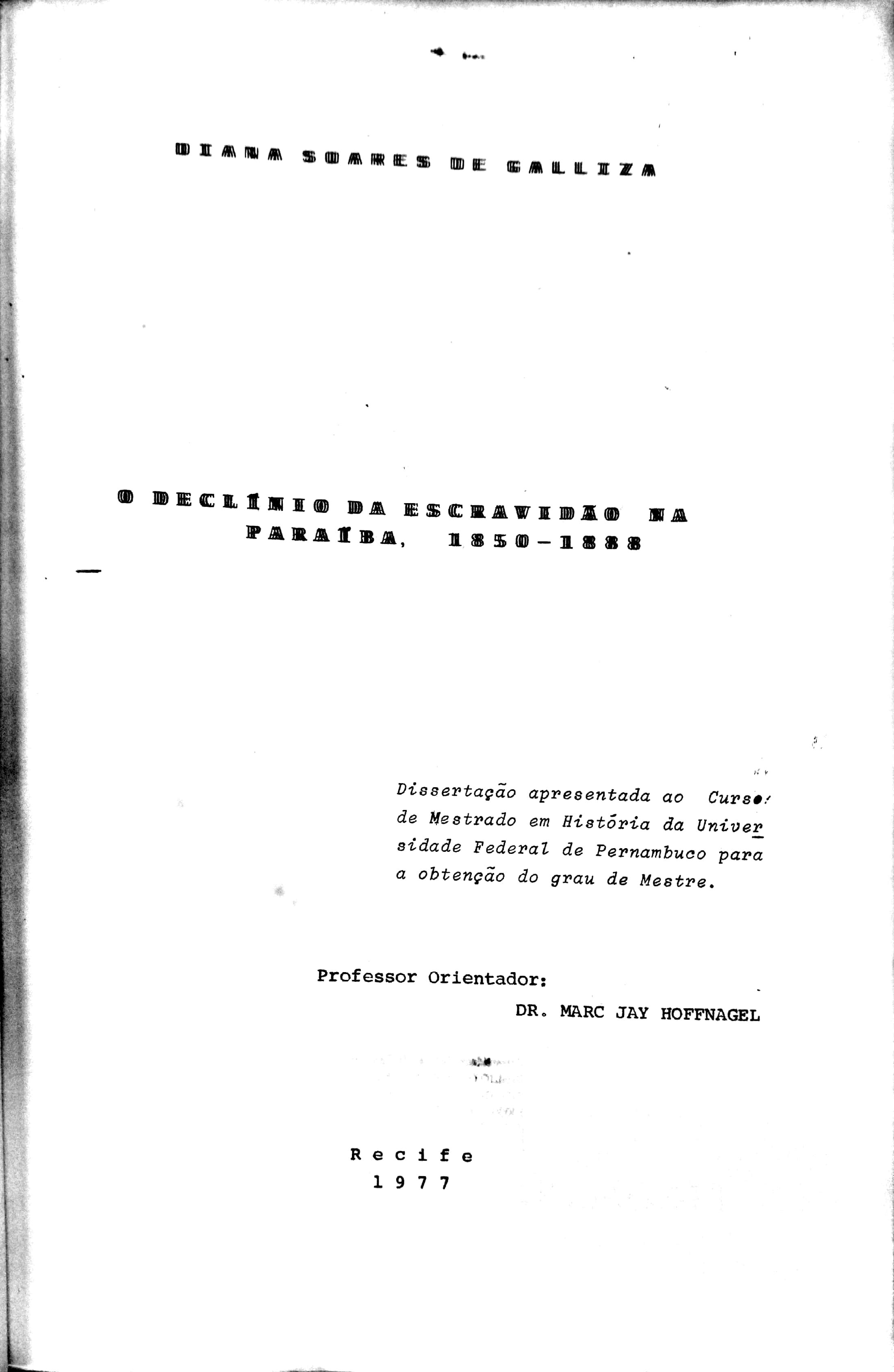 O Declínio da Escravidão na Paraíba, 1850-1888