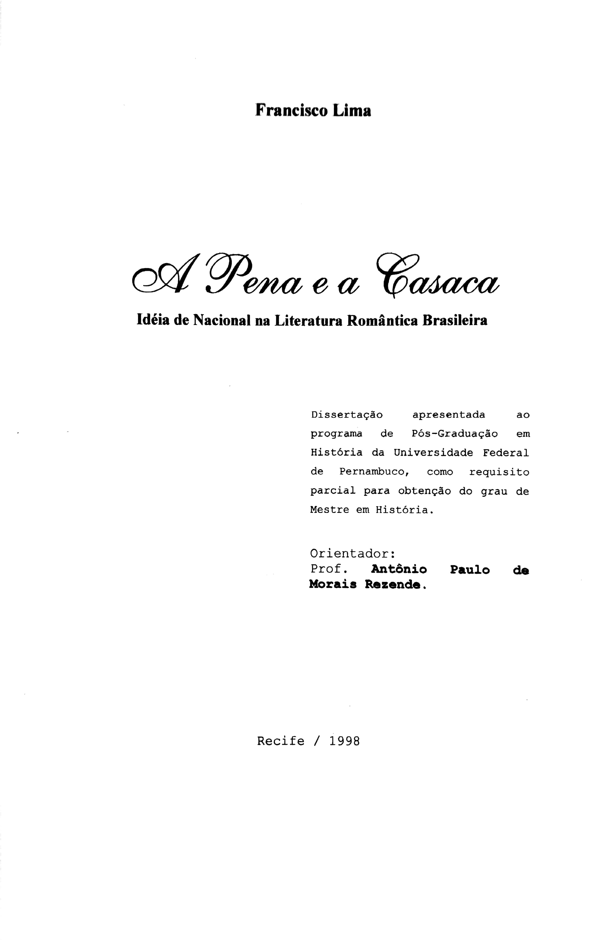 A Pena e a Casaca: Idéia de Nacional na Literatura Romântica Brasileira