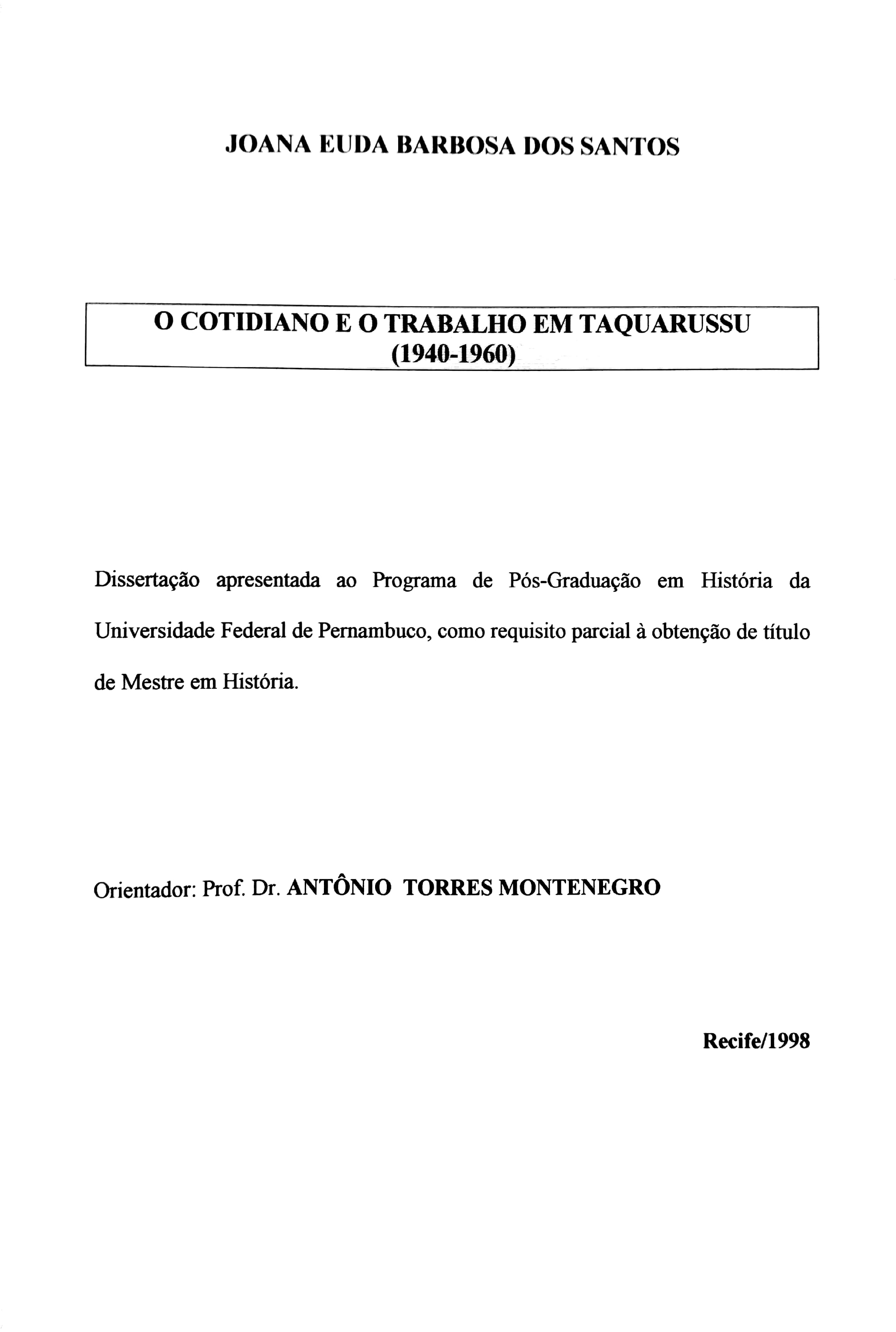 O Cotidiano e o Trabalho em Taquarussu (1940-1960)