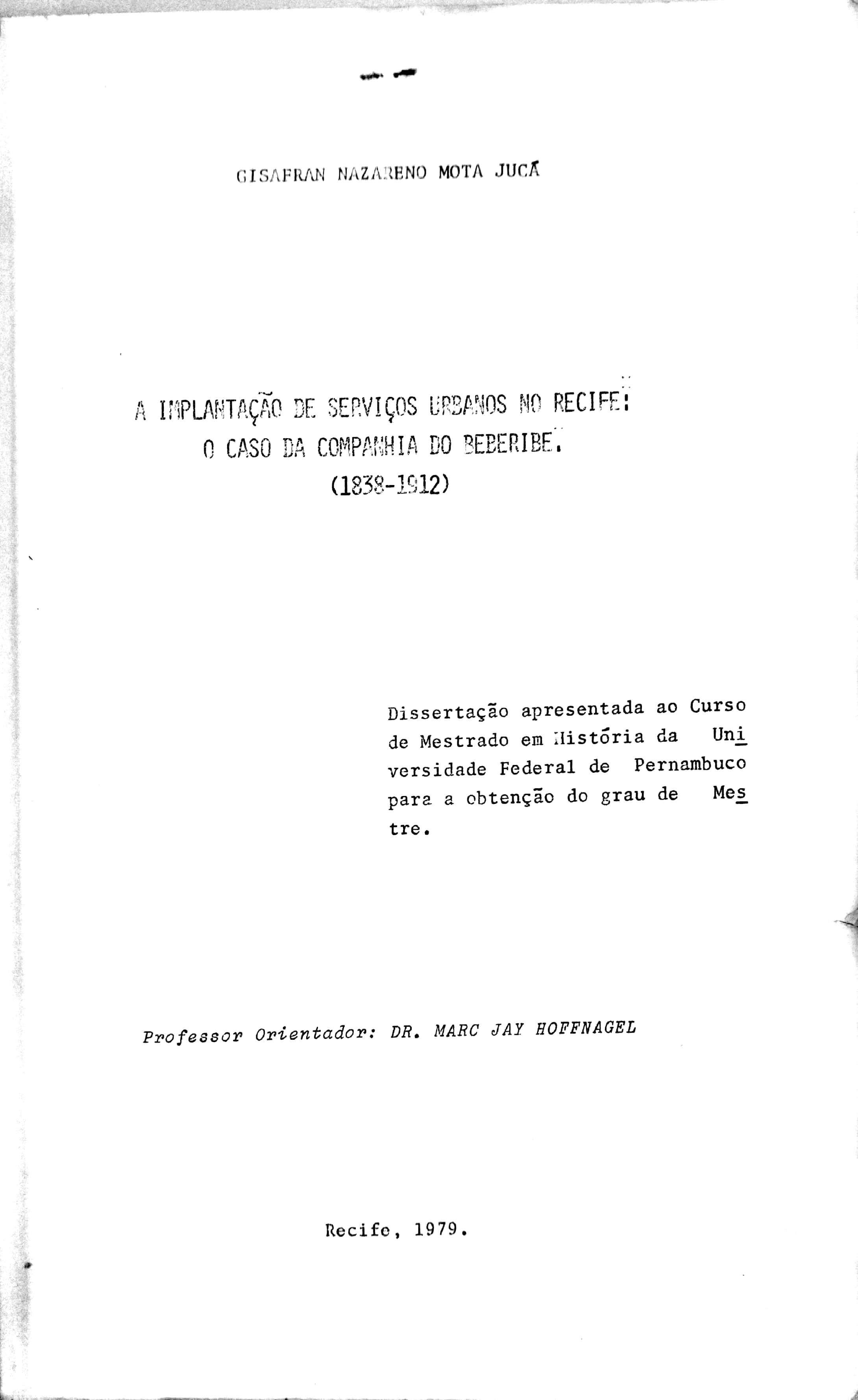 A Implantação de Serviços Urbanos no Recife: O Caso da Companhia do Beberibe (1838-1912)
